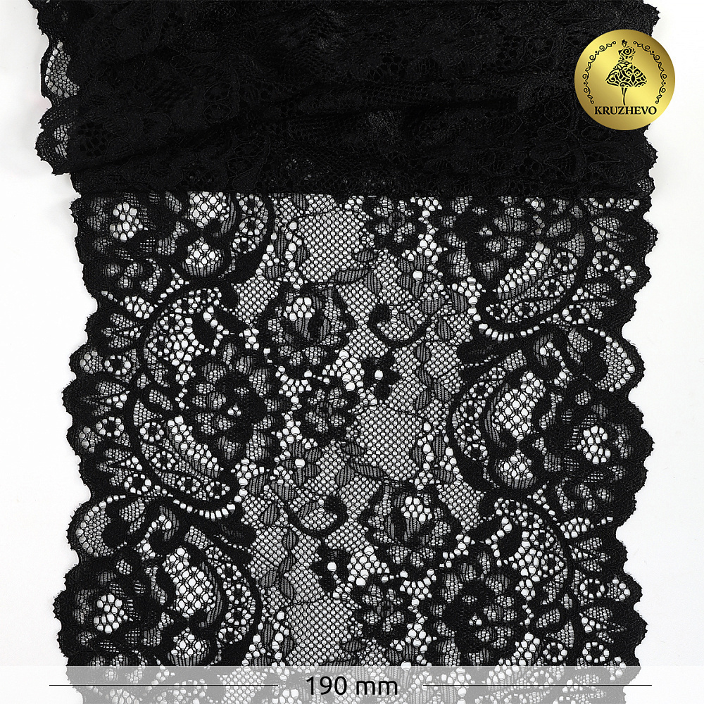 Кружево бельевое эластичное 190 мм / 3 м, 6378, цв.02 черный, Kruzhevo