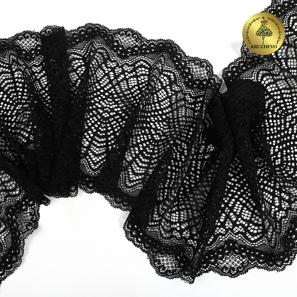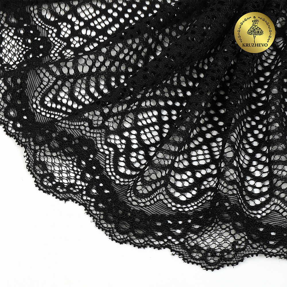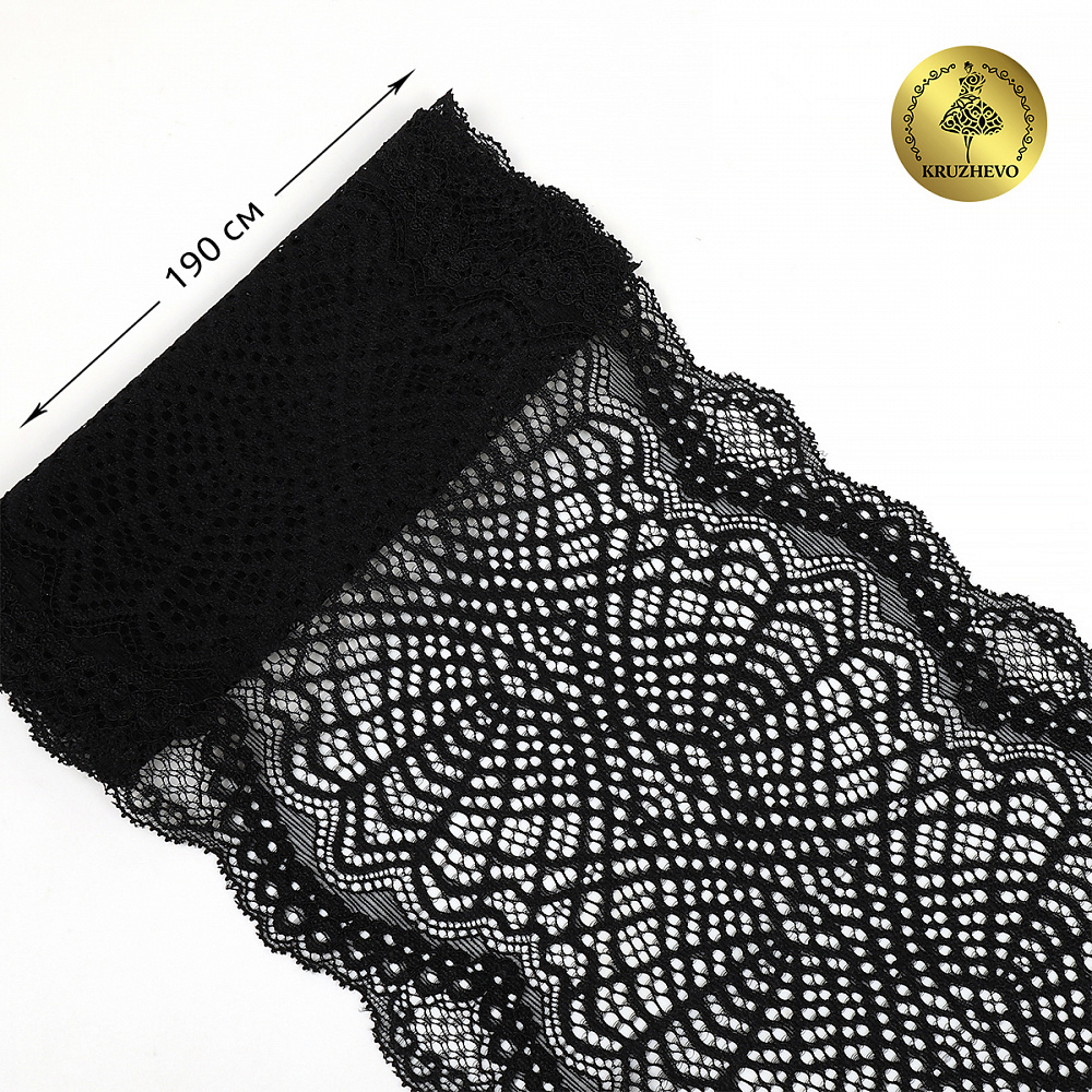 Кружево бельевое эластичное 190 мм / 3 м, 6389, цв.02 черный, Kruzhevo