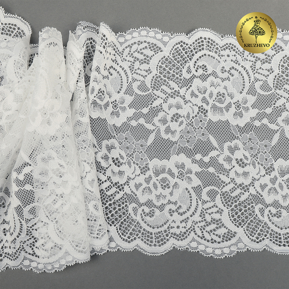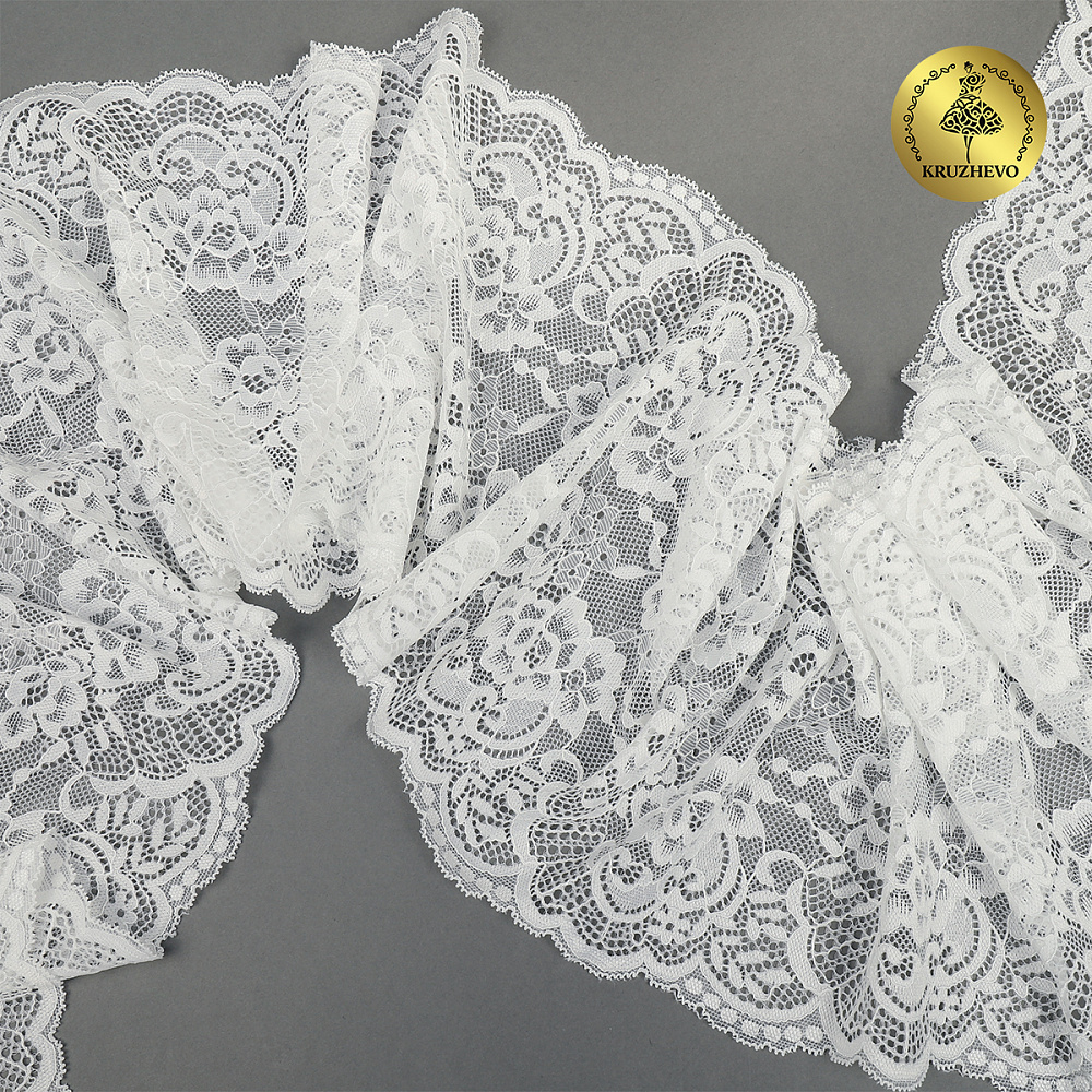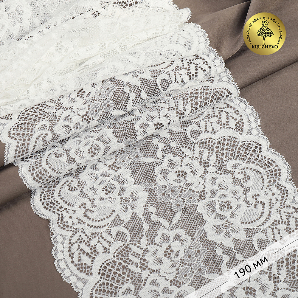 Кружево бельевое эластичное 190 мм / 3 м, 6392, цв.004 белый, Kruzhevo