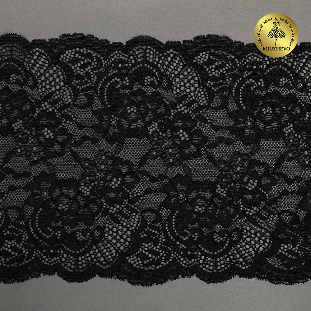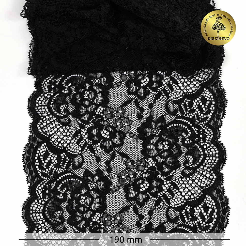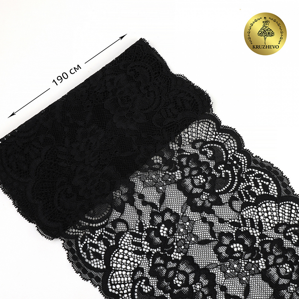 Кружево бельевое эластичное 190 мм / 10 м, 6392, цв.02 черный, Kruzhevo