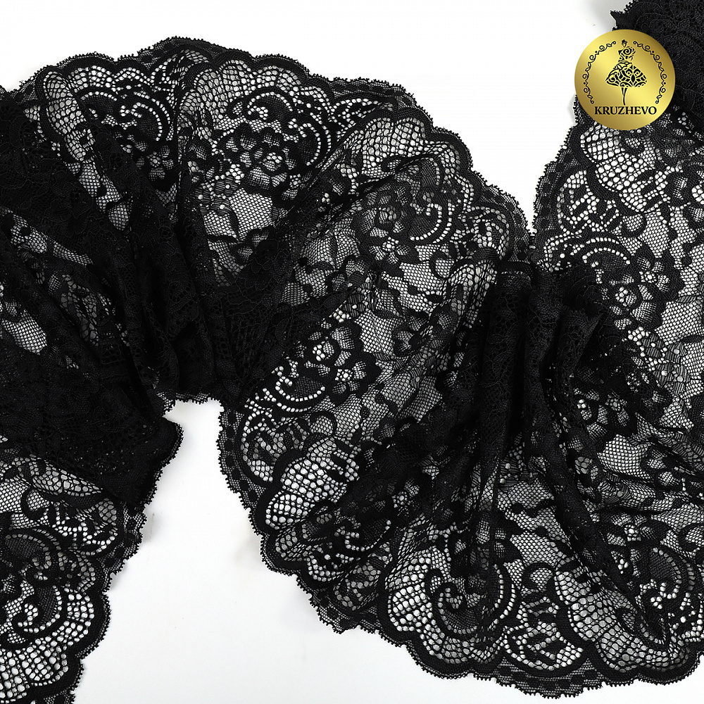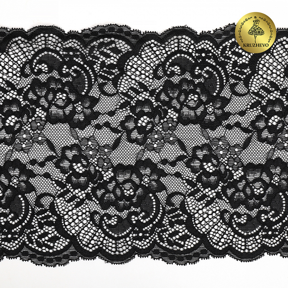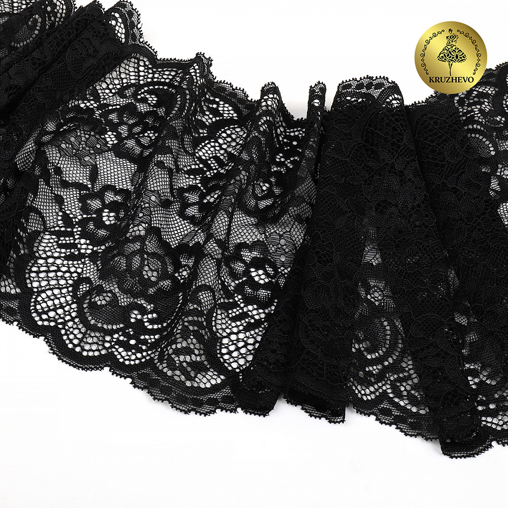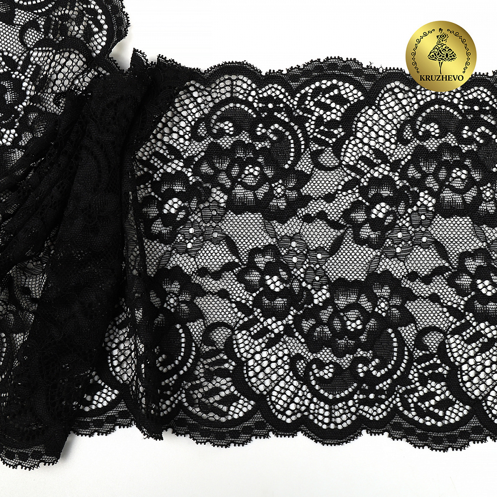 Кружево бельевое эластичное 190 мм / 10 м, 6392, цв.02 черный, Kruzhevo