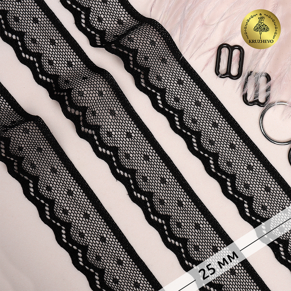 Кружево стрейч (эластичное) 25 мм / 5 метров, TBY.8028, цв.02 черный, 1385581