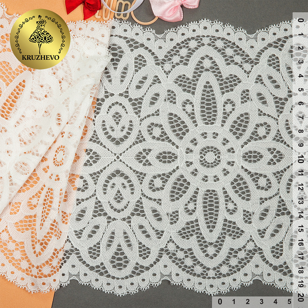 Кружево бельевое эластичное 195 мм / 25 м, 263, цв.004 сумрачно-белый, Kruzhevo