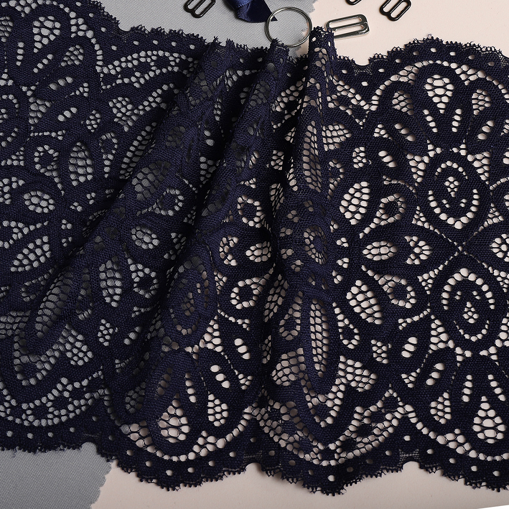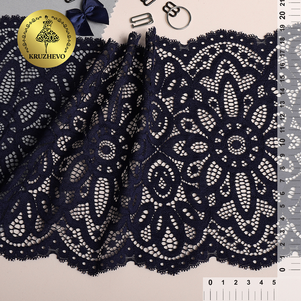 Кружево бельевое эластичное 195 мм / 25 м, 263, цв.03 т.синий, Kruzhevo