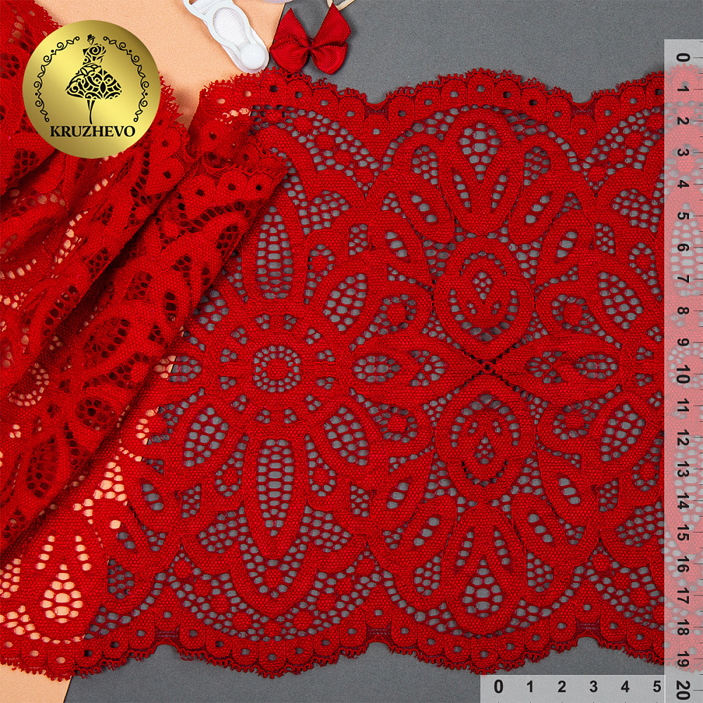 Кружево бельевое эластичное 195 мм / 3 метра, TBY.L1189, цв.100 темно-красный