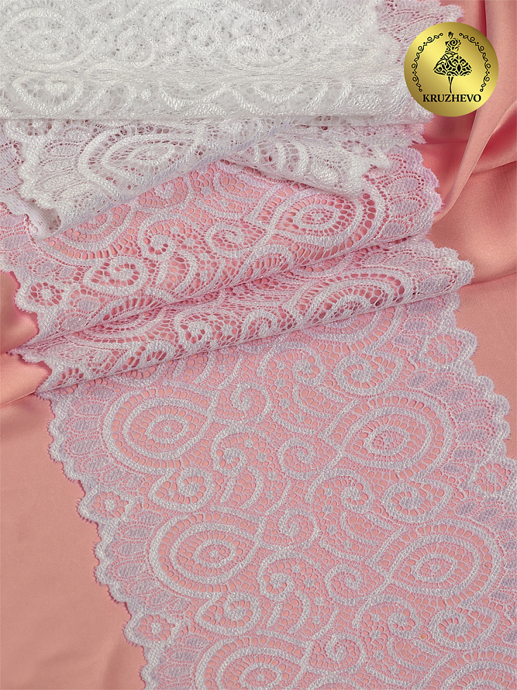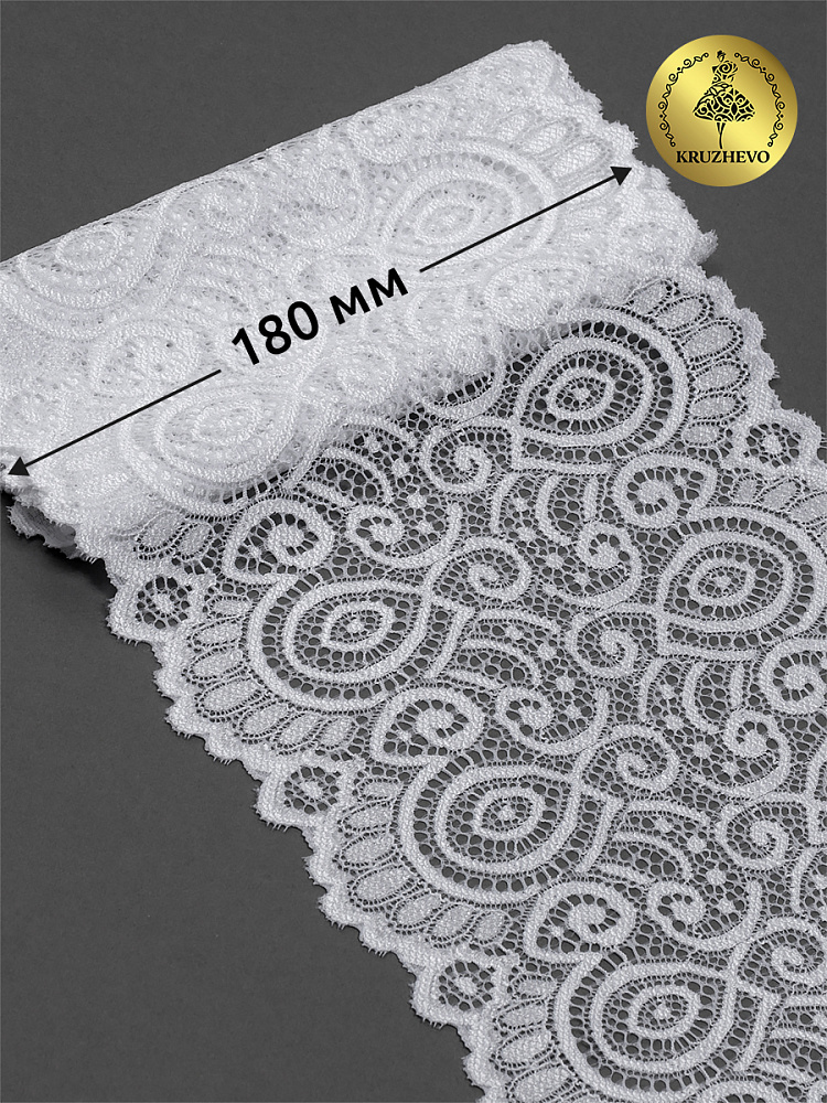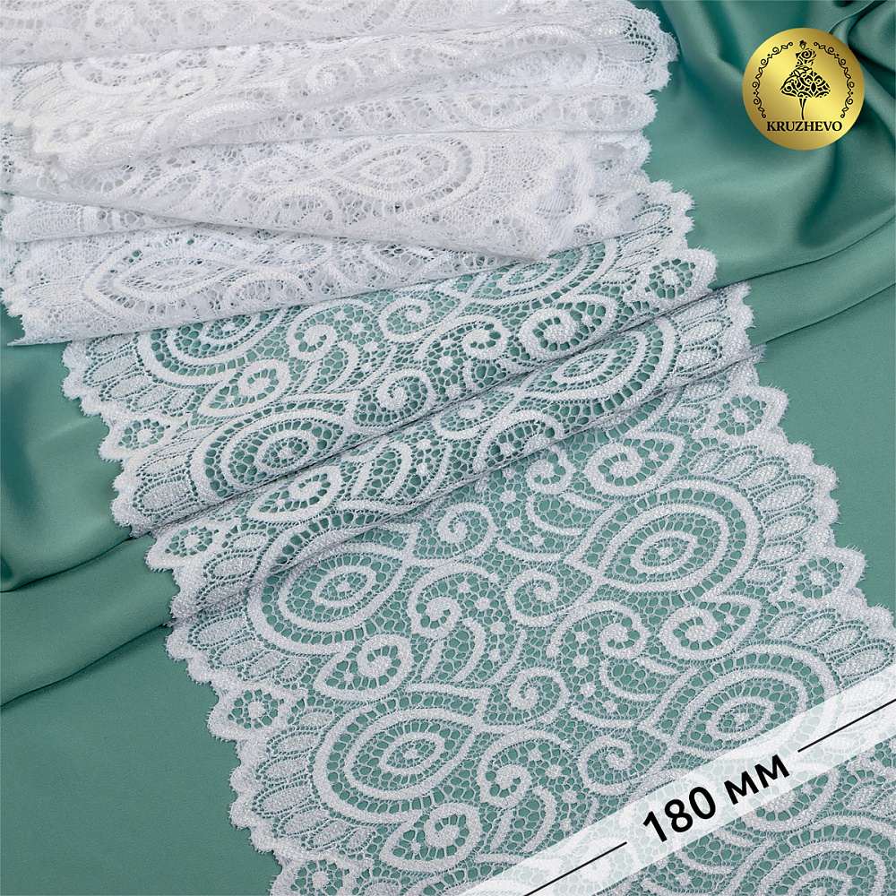 Кружево бельевое эластичное 180 мм / 25 м, 263, цв.001 белый, Kruzhevo