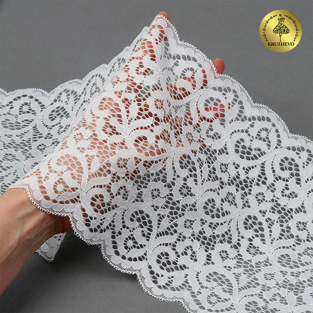 Кружево бельевое эластичное 180 мм / 25 м, 264, цв.004 сумрачно-белый, Kruzhevo
