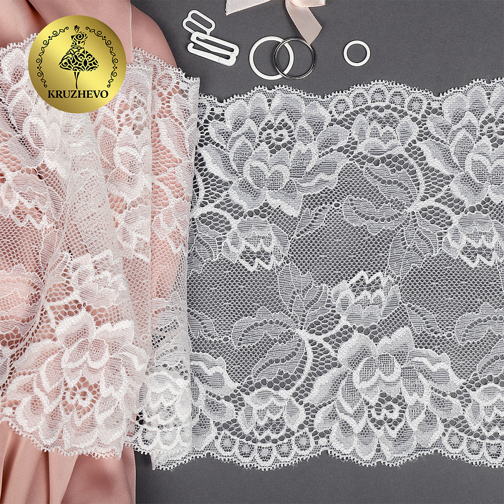 Кружево бельевое эластичное 180 мм / 3 метра, TBY.L838, цв.004 сумрачно-белый