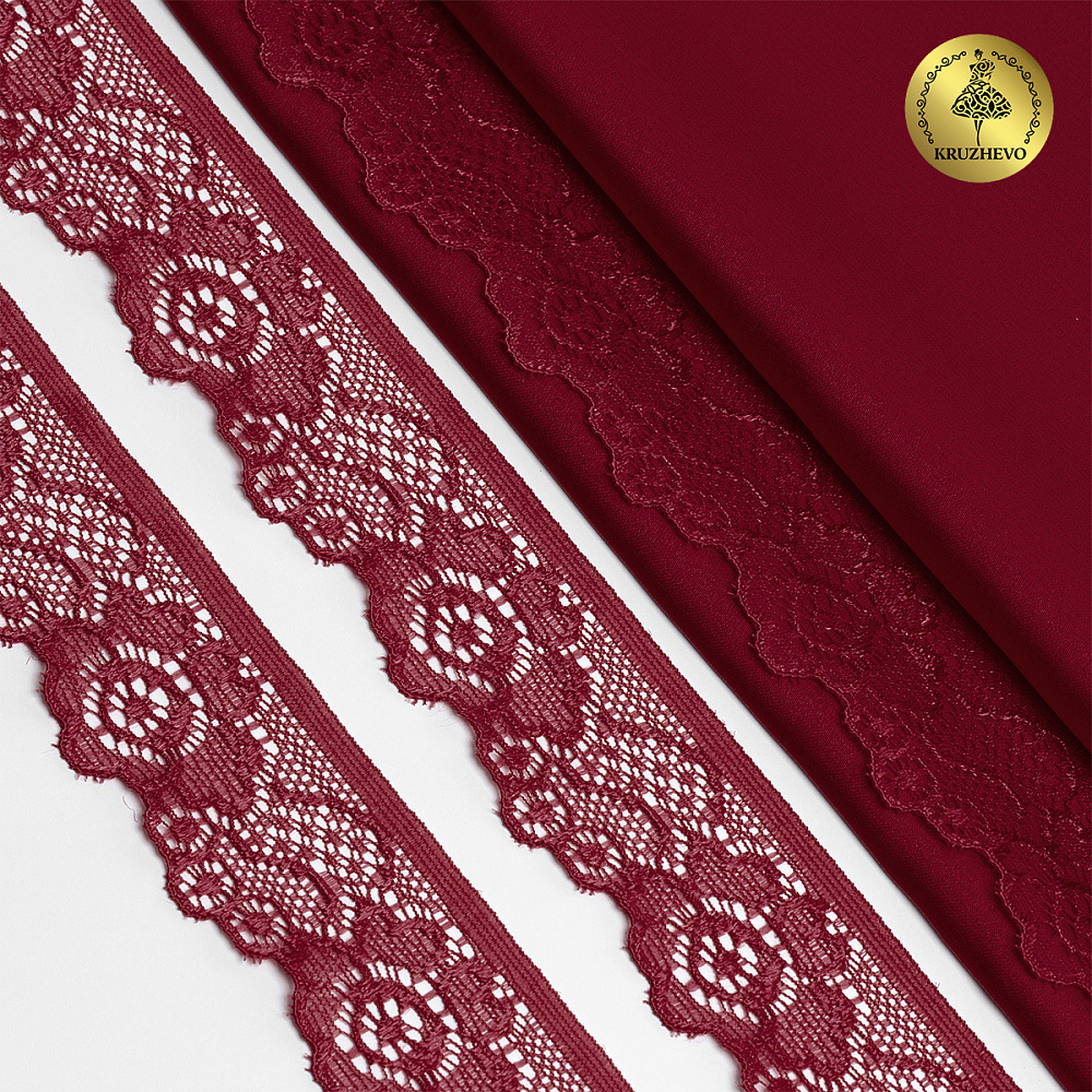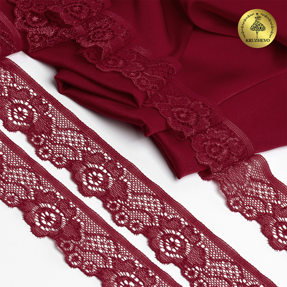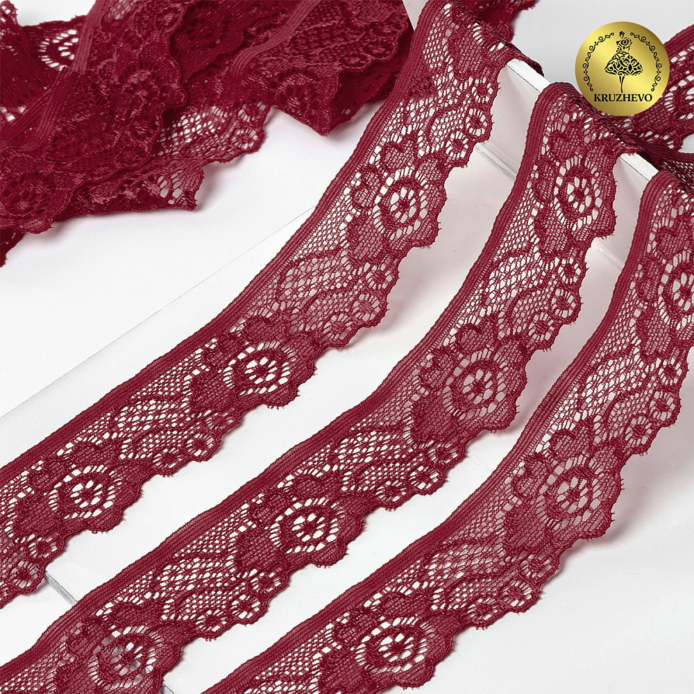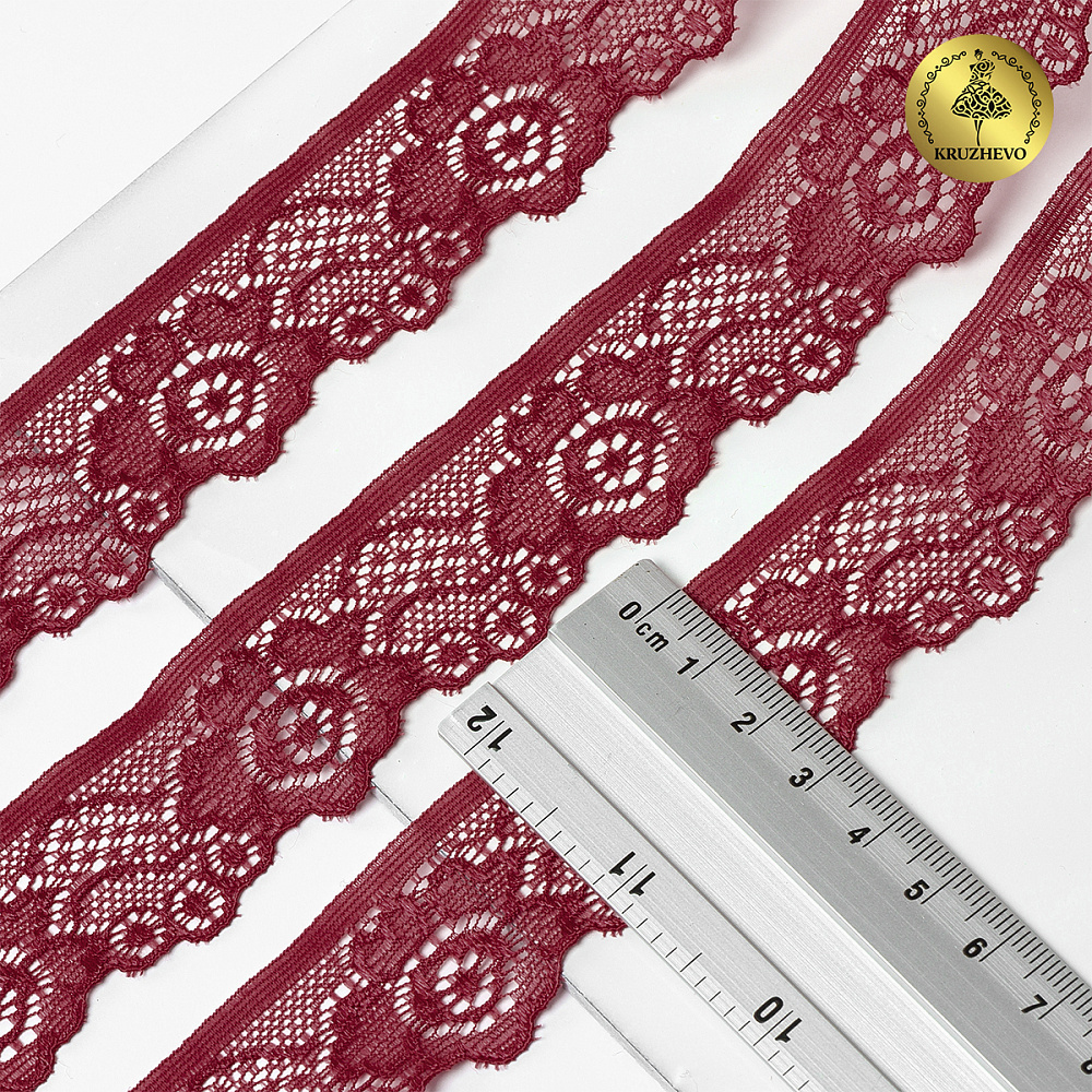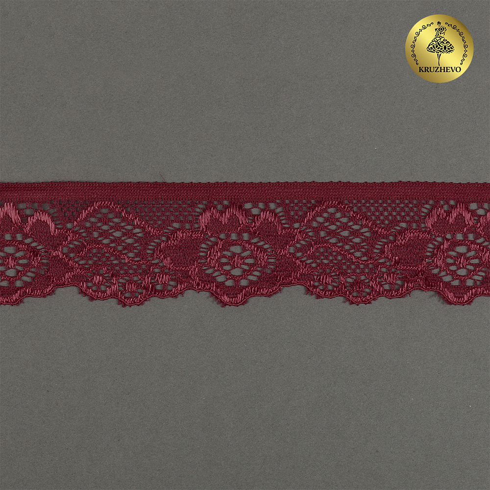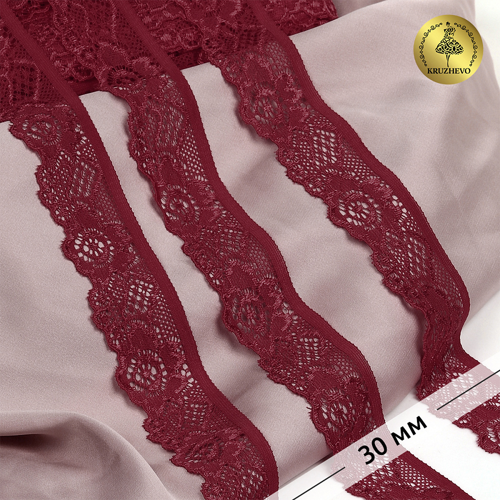 Кружево эластичное (стрейч) 30 мм / 50 метров, TBY.L839, цв.F178 бордовый