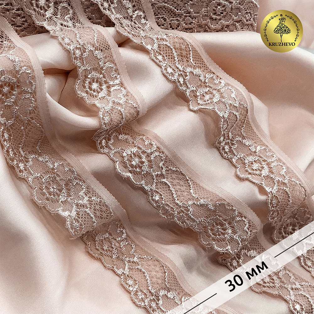 Кружево эластичное (стрейч) 30 мм / 5 метров, TBY.L839, цв.S098 капучино