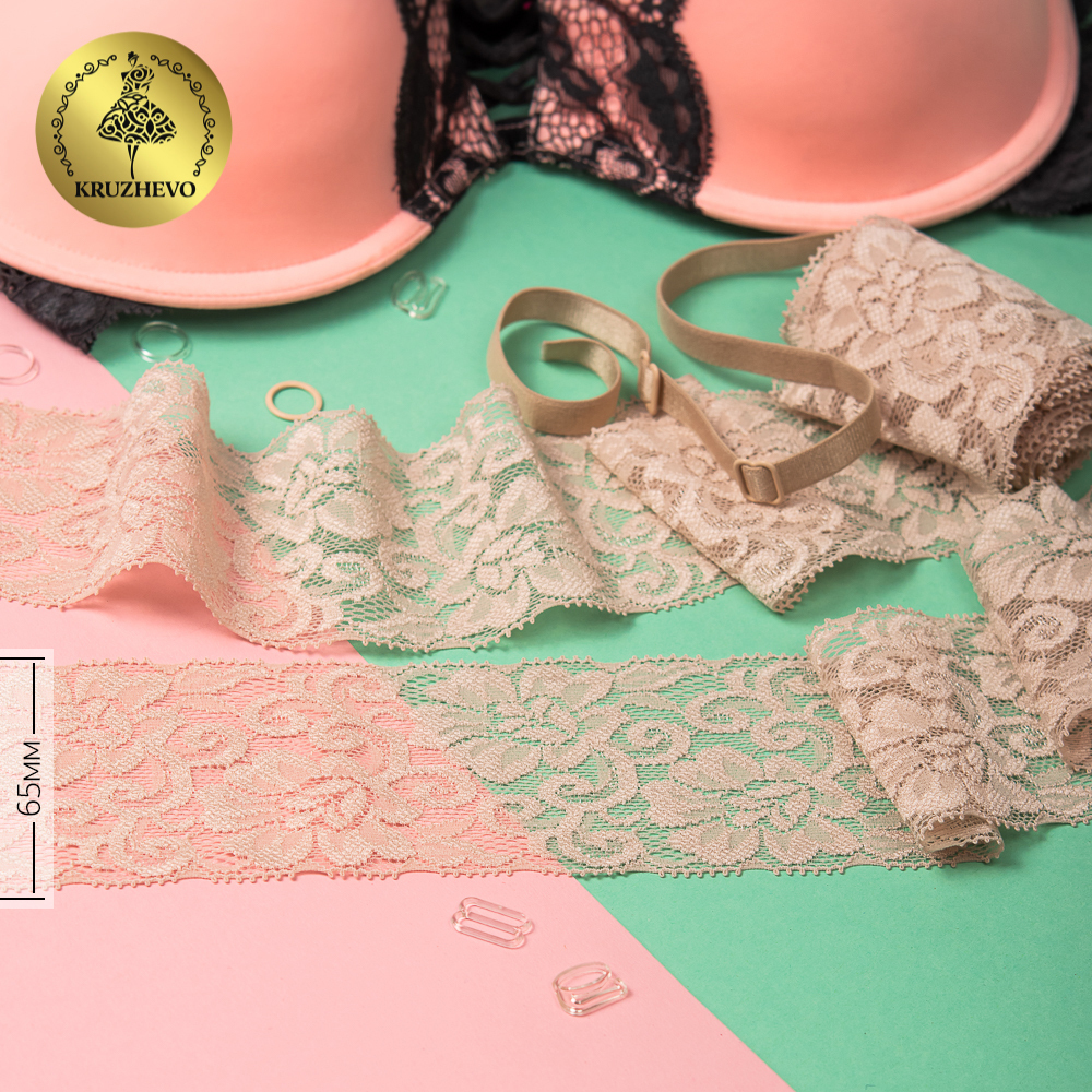 Кружево эластичное (стрейч) 65 мм / 3 метра, TBY.L840, цв.11 бежевый