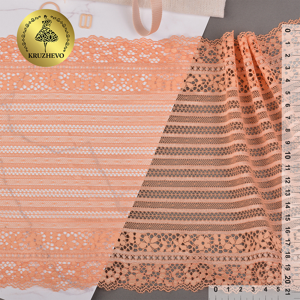 Кружево бельевое эластичное 210 мм / 10 м, цв.03 персик, Kruzhevo