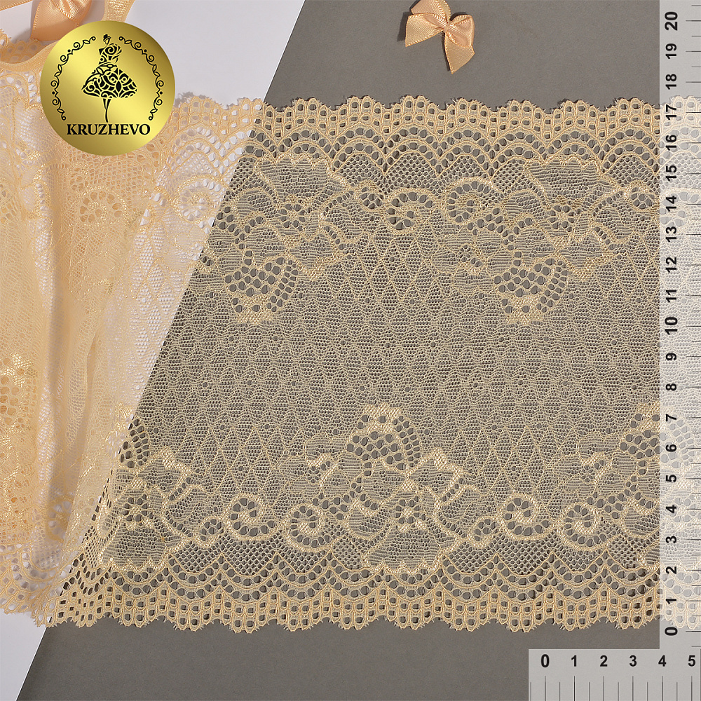 Кружево бельевое эластичное 175 мм / 10 м, цв.бежевый, Kruzhevo