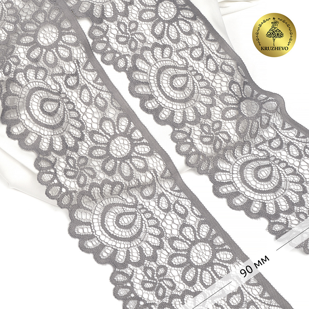 Кружево эластичное (стрейч) 90мм YSTL00839/N, цв.L2475 серый уп.25м, Kruzhevo