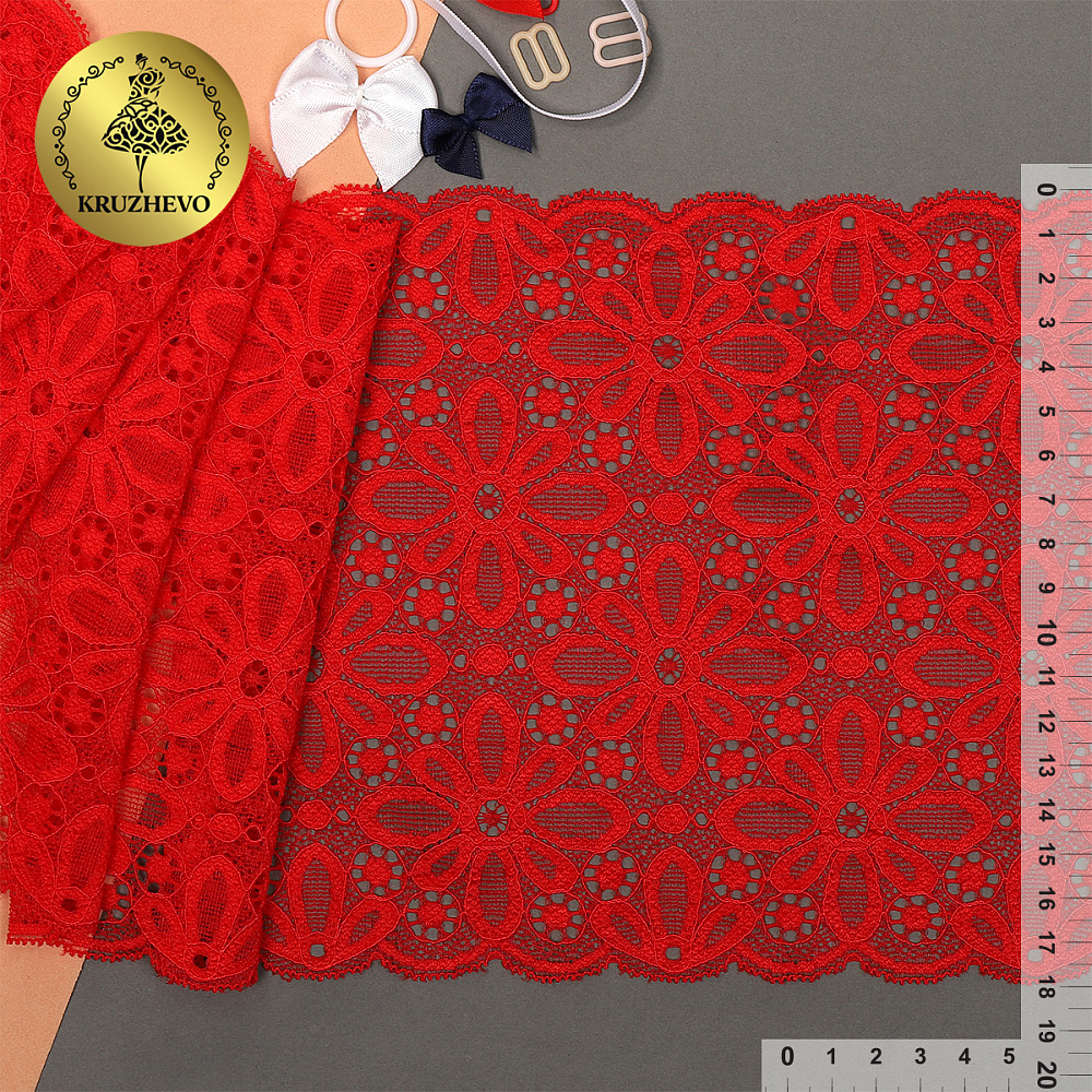 Кружево эластичное (стрейч) 180 мм, TBY 8026, SD163 красный, 10м, Kruzhevo