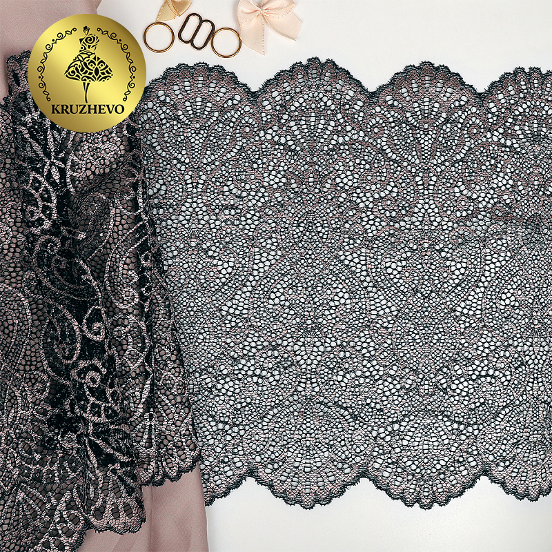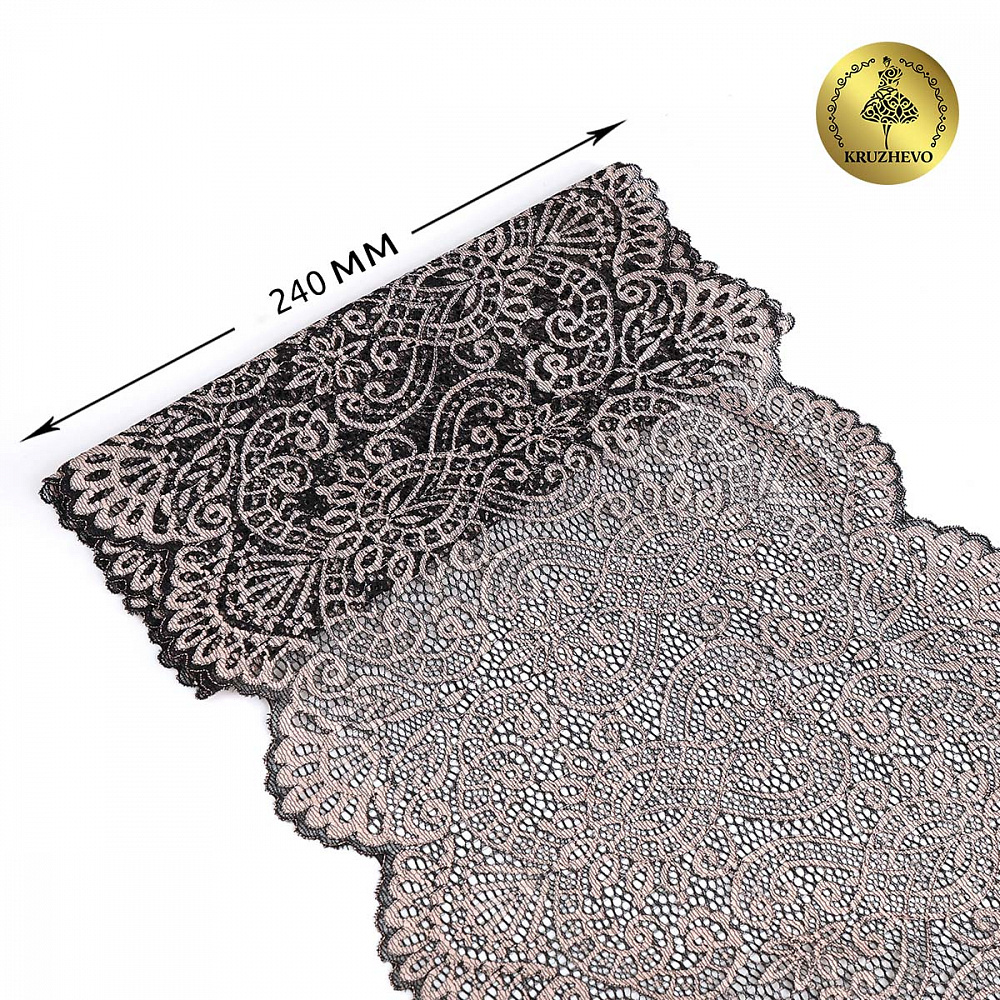 Очень красивый дизайн эластичного кружева. Кружево широкое, 23 см. Есть небольшой корд. Кружево упругое, хорошо тянется, не мнется. Смотрится дорого и оригинально. Качество премиум-сегмент. С таким кружевом работать одно удовольствие! Идеально подойдет для пошива нижнего белья и элегантной одежды для сна и отдыха.