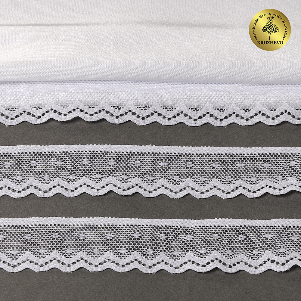 Кружево эластичное (стрейч) 25 мм, TBY.8028, 01 белый, 5м, Kruzhevo