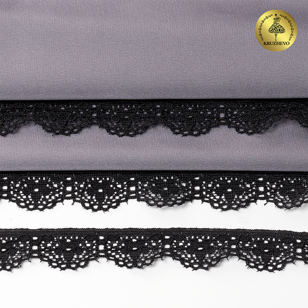 Кружево эластичное (стрейч) 15 мм TBY.8031, цв.02 черный, 5 метров, Kruzhevo
