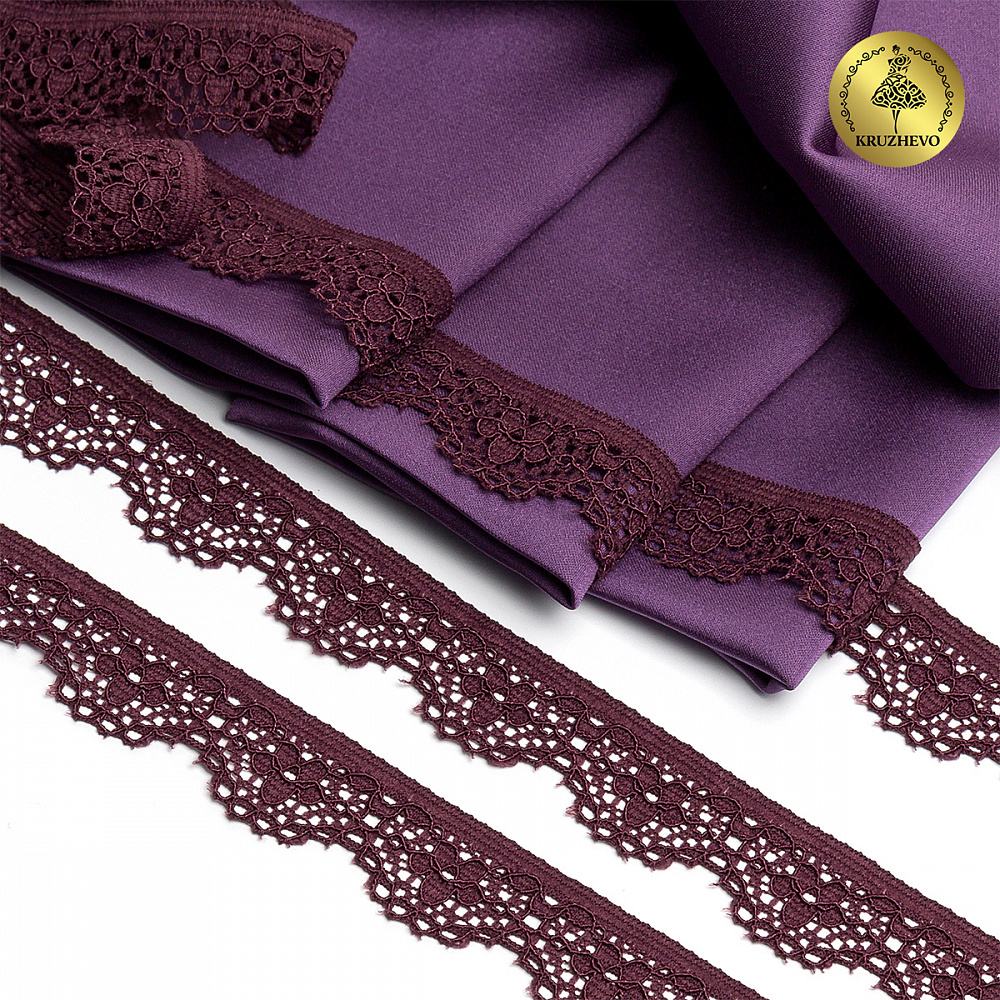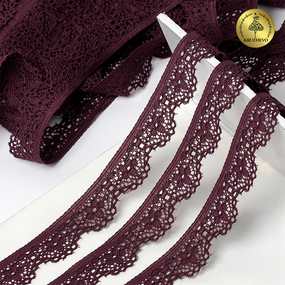 Кружево эластичное (стрейч) 15 мм TBY.8031, цв.S254 сливовое вино, 5 метров, Kruzhevo