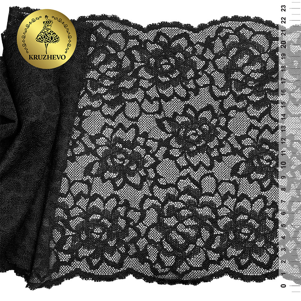 Кружево эластичное (стрейч) 220 мм, TBY.K13, 170 черный, 10м, Kruzhevo
