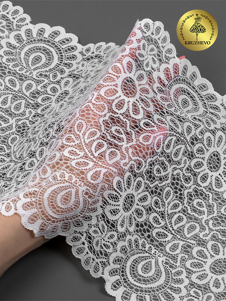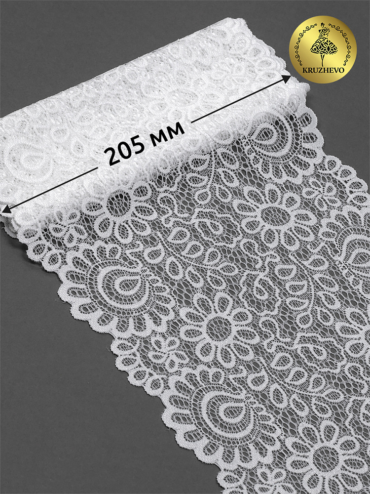 Кружево бельевое эластичное 205 мм / 3 м, TBY.YSTL00839, цв.01 белый, Kruzhevo