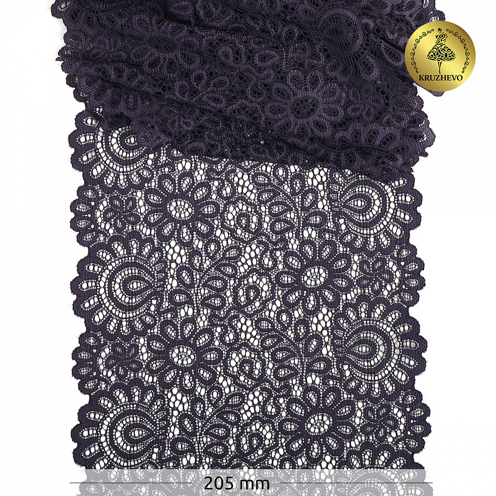 Кружево эластичное (стрейч) 205 мм, TBY.YSTL00839, 2817 сиреневый, 25м, Kruzhevo