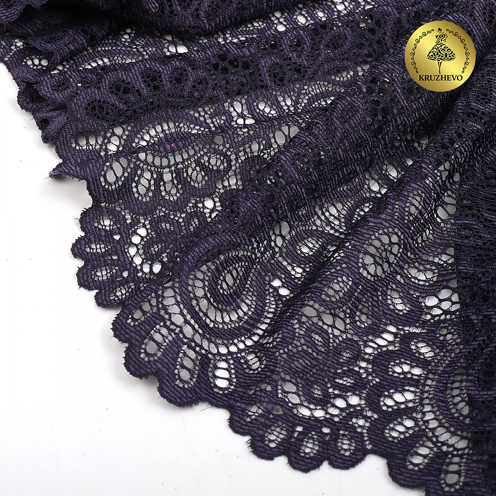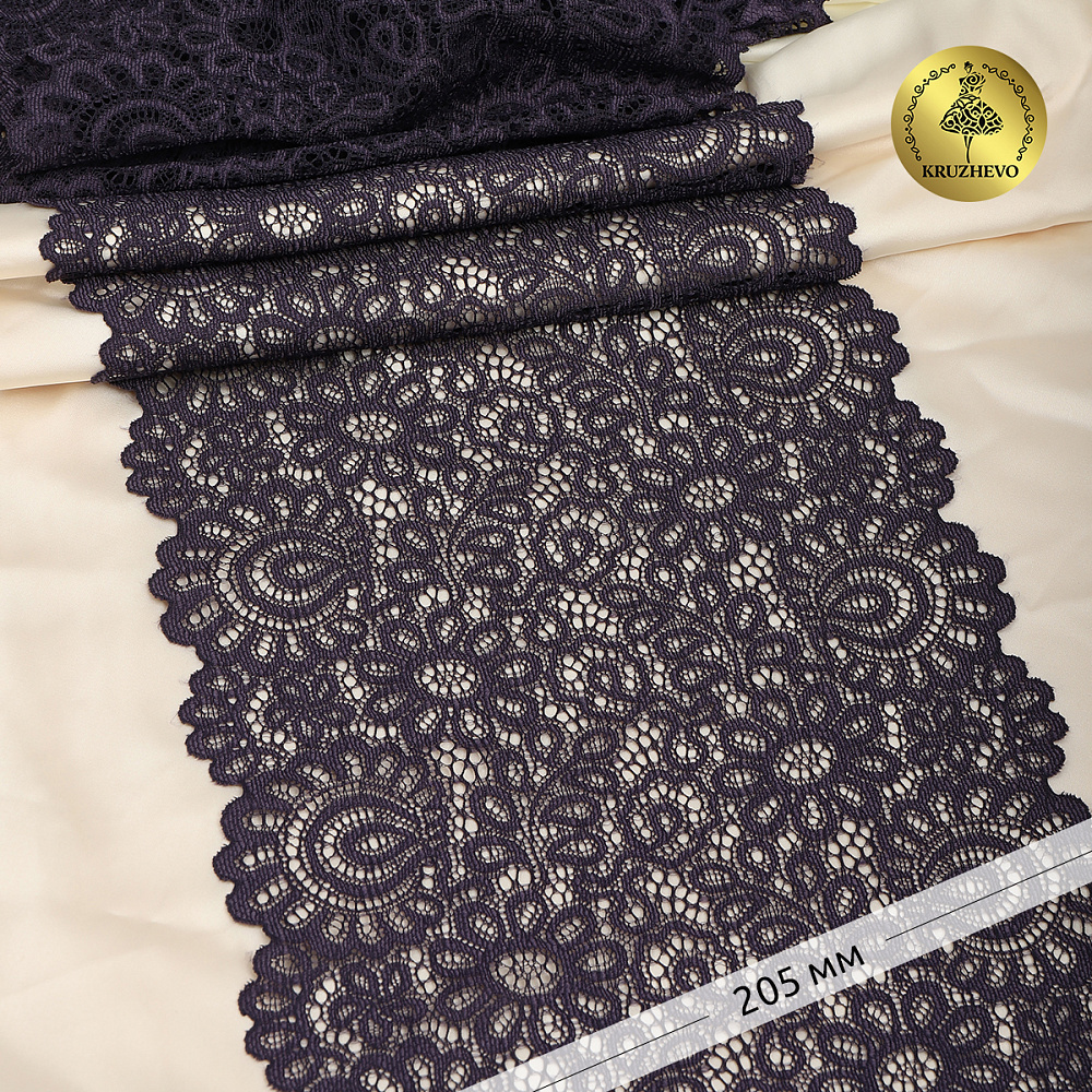 Кружево эластичное (стрейч) 205 мм, TBY.YSTL00839, 2817 сиреневый, 3м, Kruzhevo