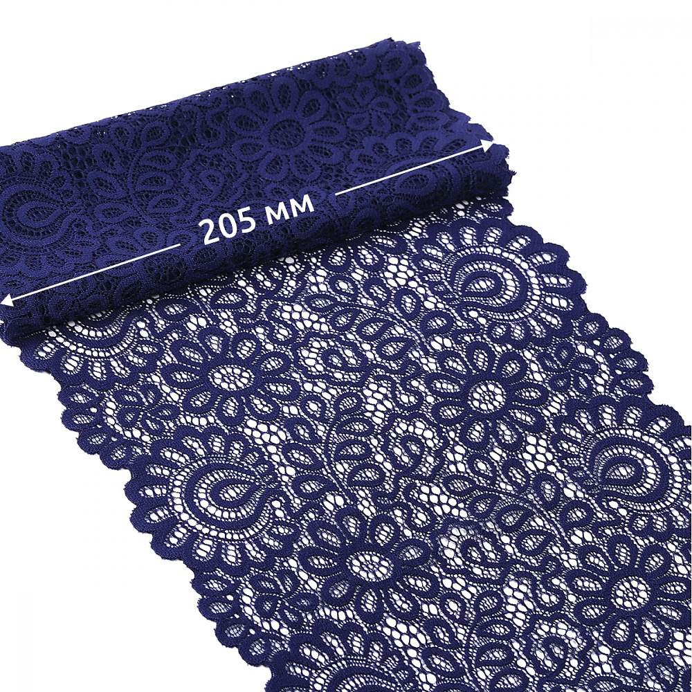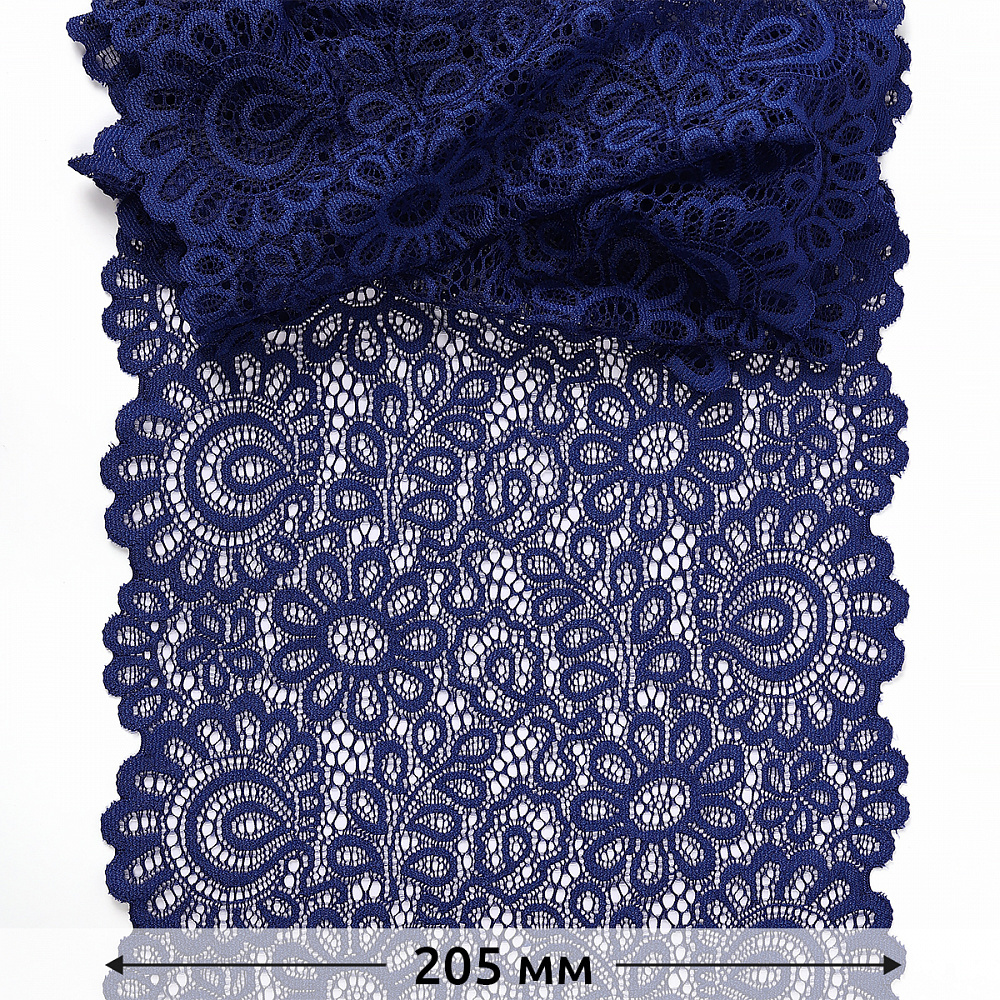 Кружево бельевое эластичное 205 мм / 25 м, TBY.YSTL00839, цв.L1832 синий, Kruzhevo