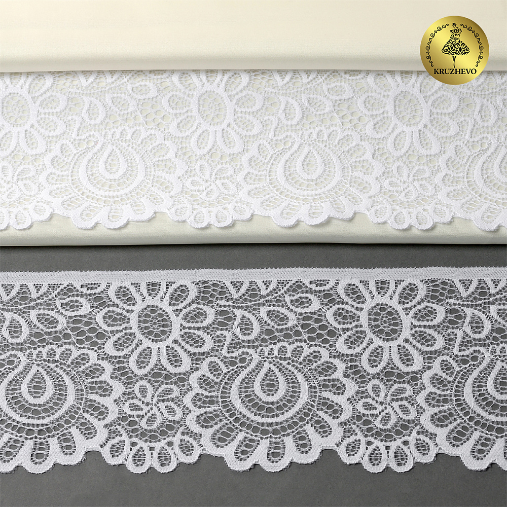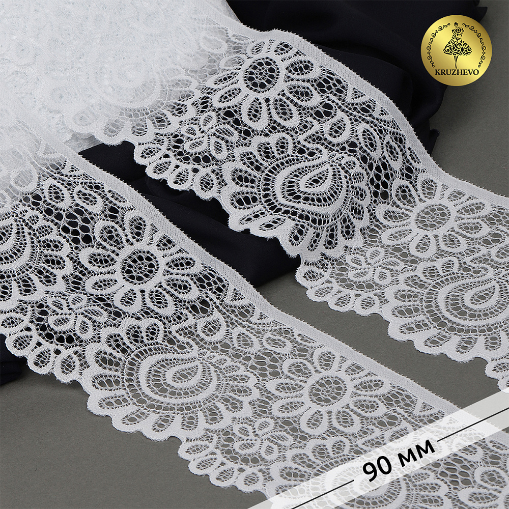 Кружево эластичное (стрейч) 90 мм, TBY.YSTL00839.N, 001 белый, 25м, Kruzhevo