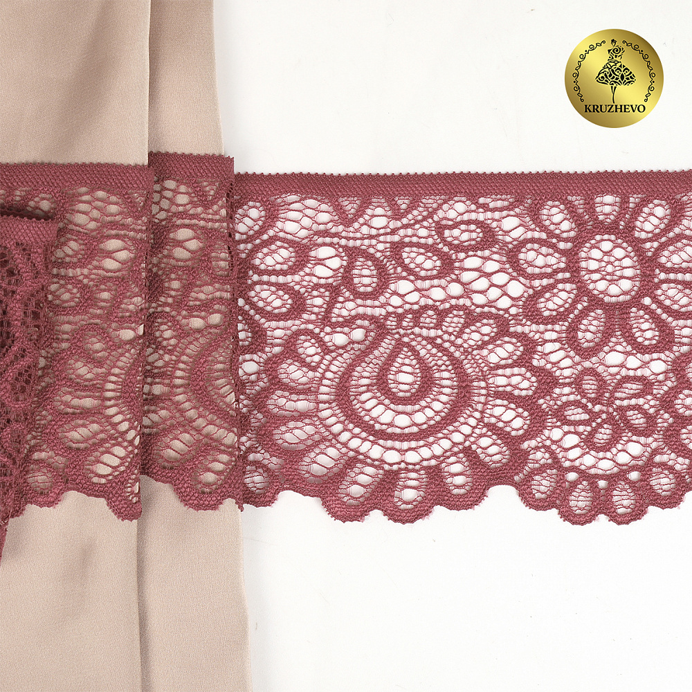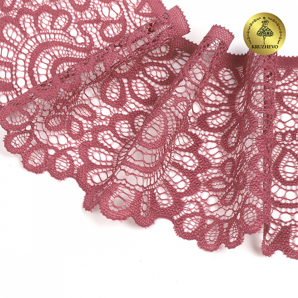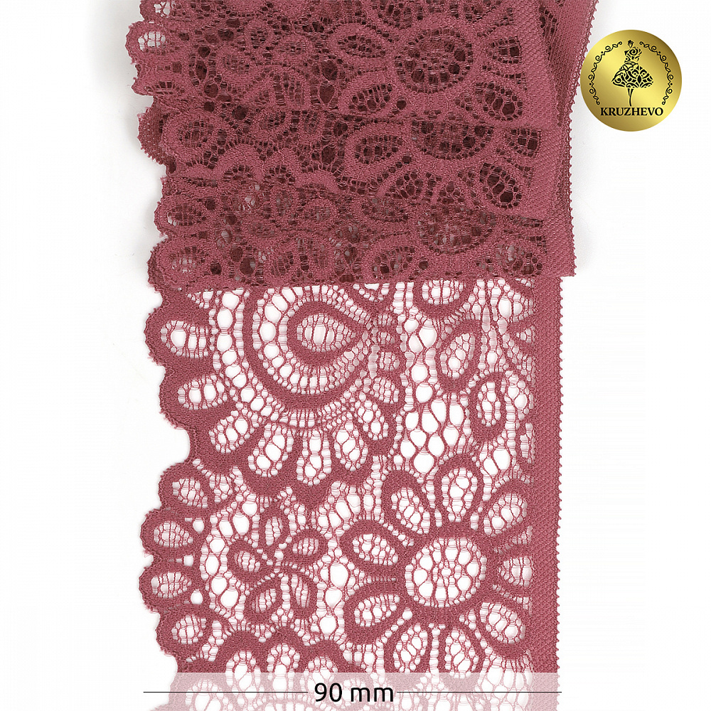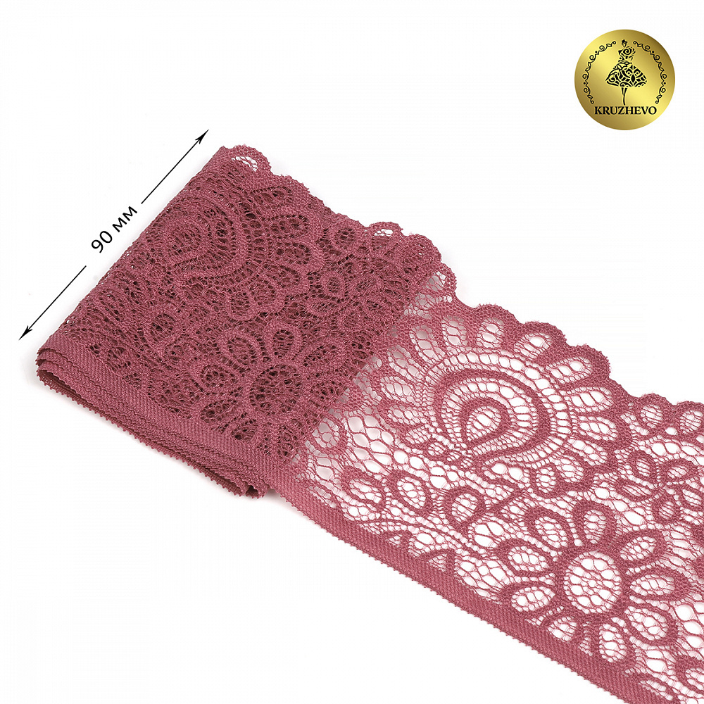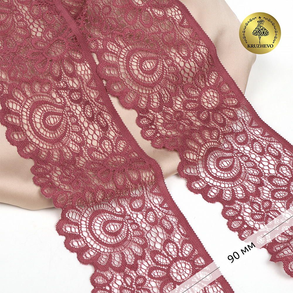 Кружево эластичное (стрейч) 90 мм, TBY.YSTL00839.N, L2925 розовый рубин, 3м, Kruzhevo