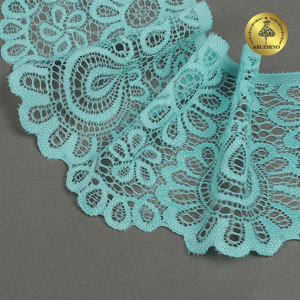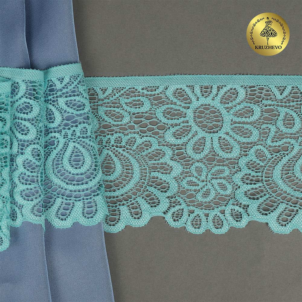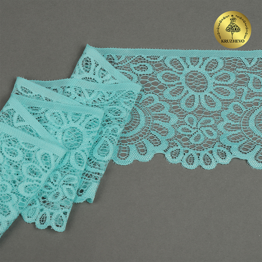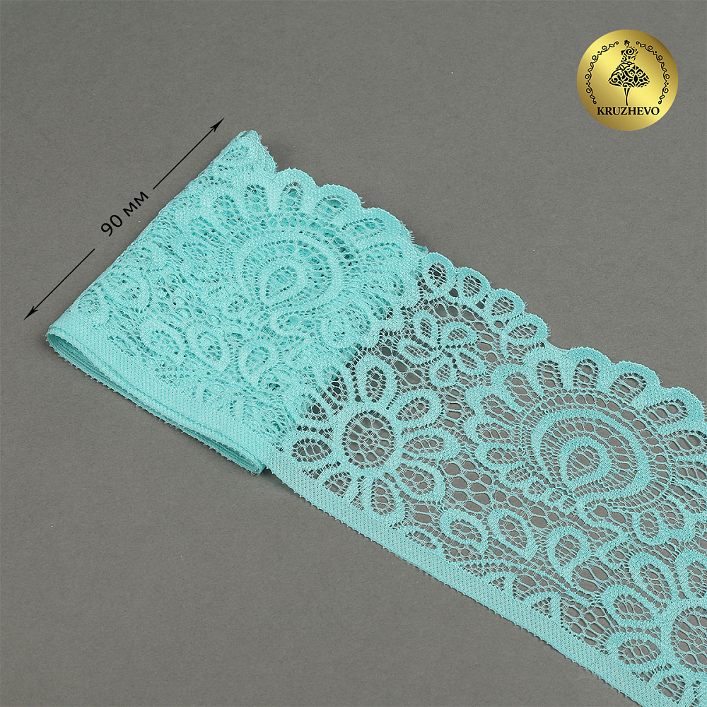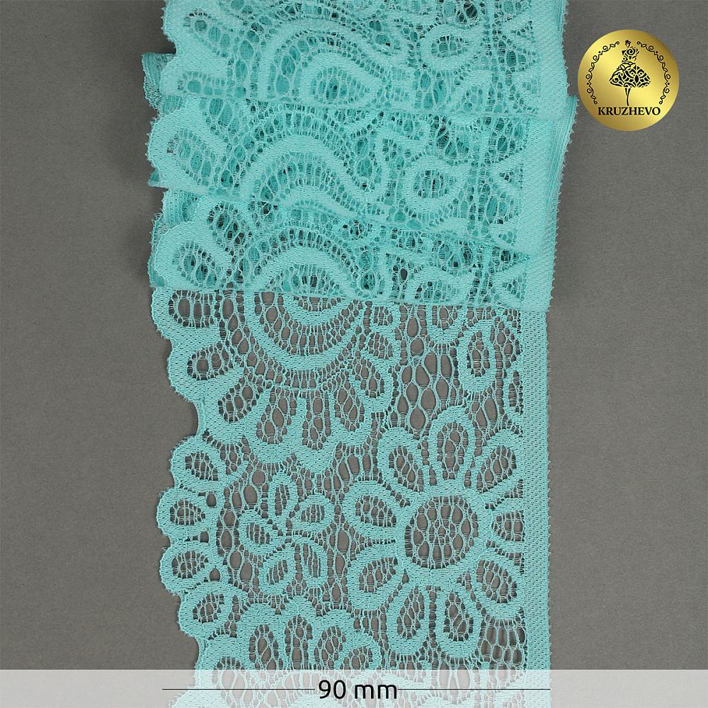 Кружево эластичное (стрейч) 90 мм, TBY.YSTL00839.N, L422 тиффани, 3м, Kruzhevo