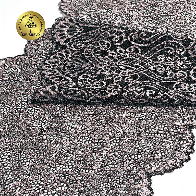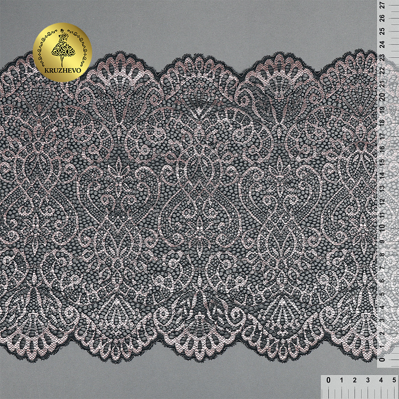 Очень красивое двухцветное кружево-стрейч с фестонами. Интересный дизайн - удобно сочетать в работе с другой фурнитурой. Идеально подойдет для пошива нижнего белья или домашней одежды.