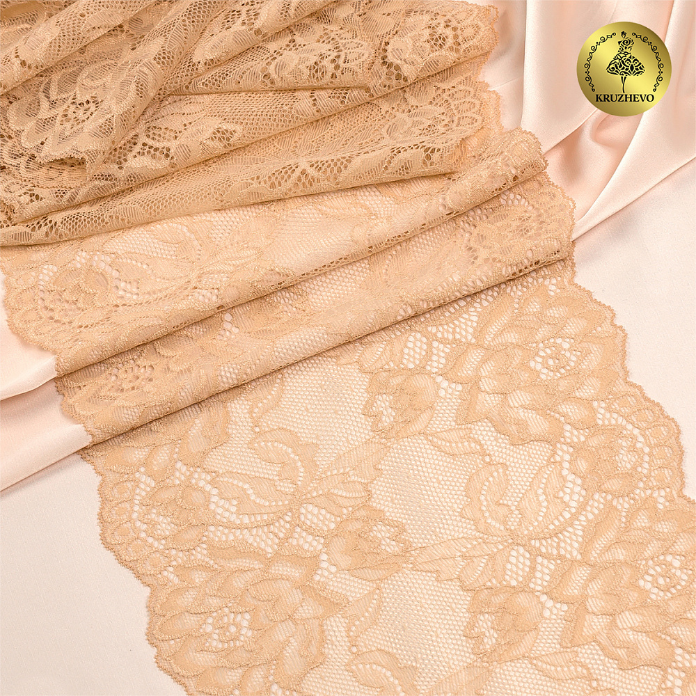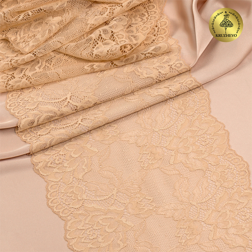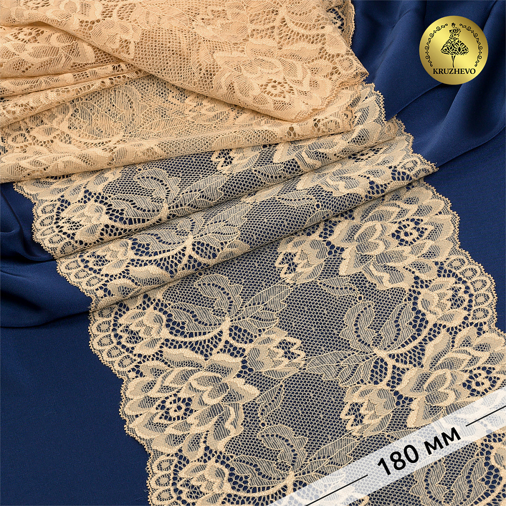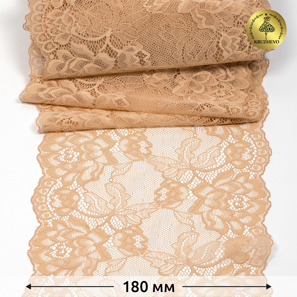 Кружево бельевое эластичное 180 мм / 25 м, цв.S180 бежевый, Kruzhevo