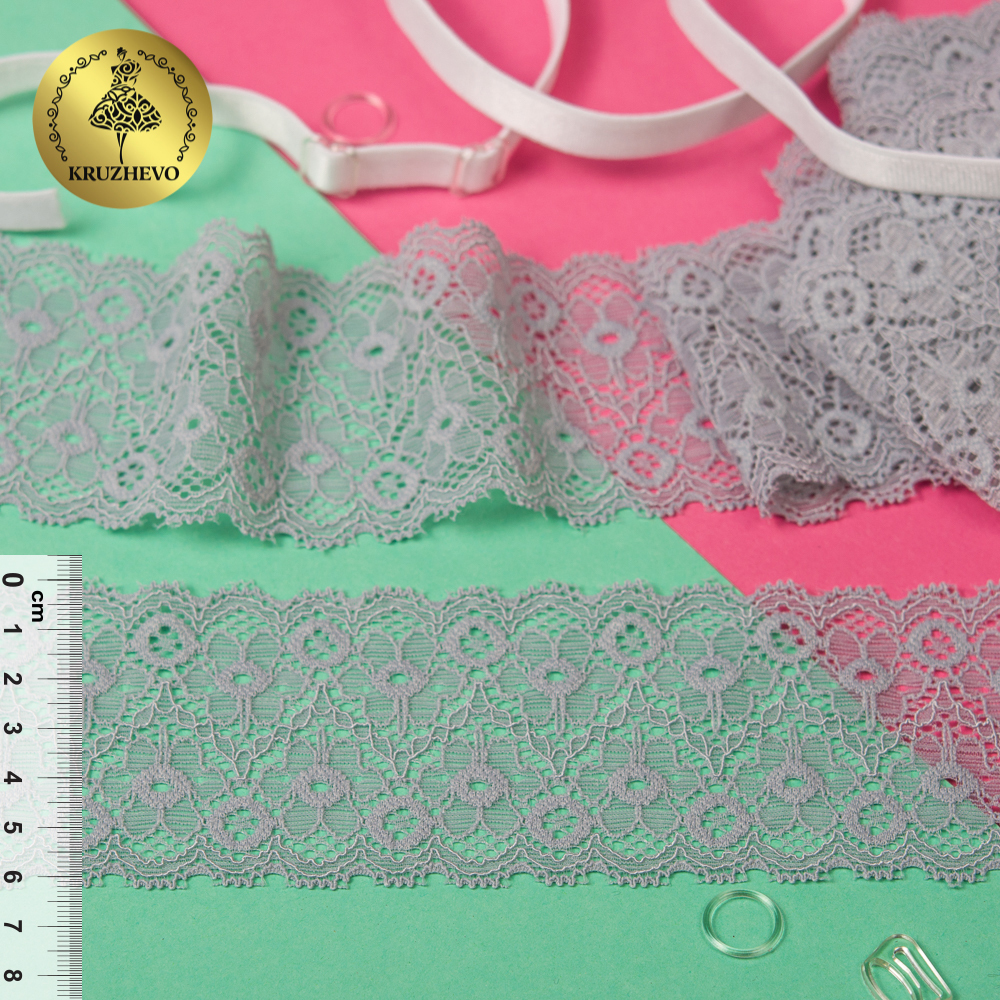 Кружево эластичное (стрейч) 60 мм, 30095, цв.03 серый, 3 метра, Kruzhevo