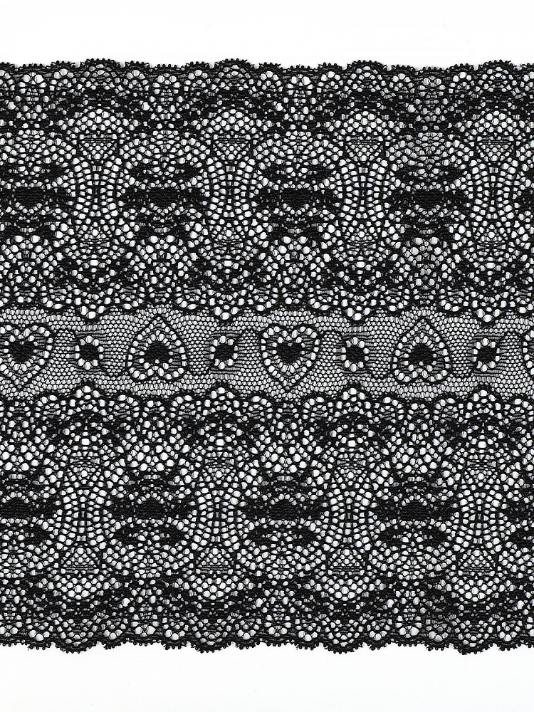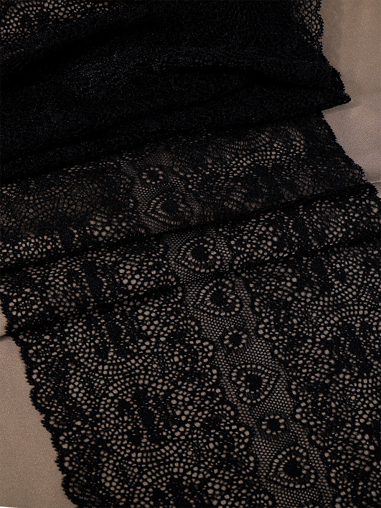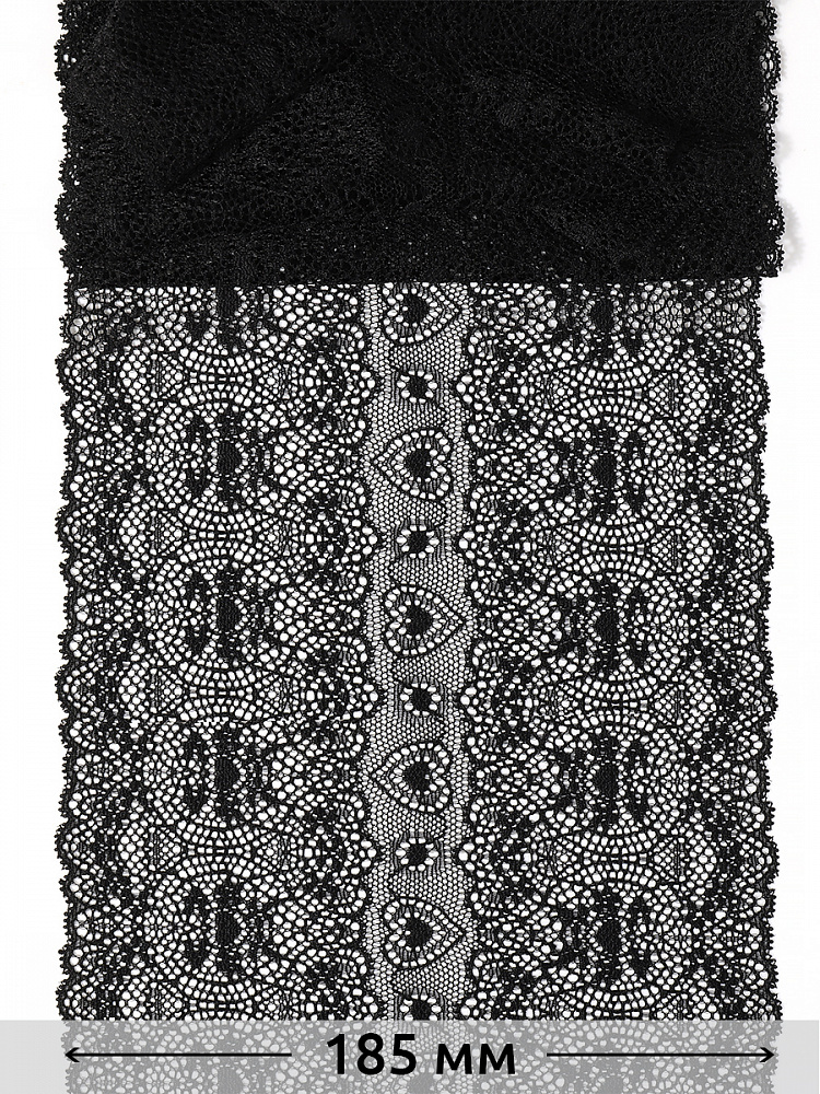 Кружево бельевое эластичное 185 мм / 2.7 м, 6185, цв.02 черный, Kruzhevo