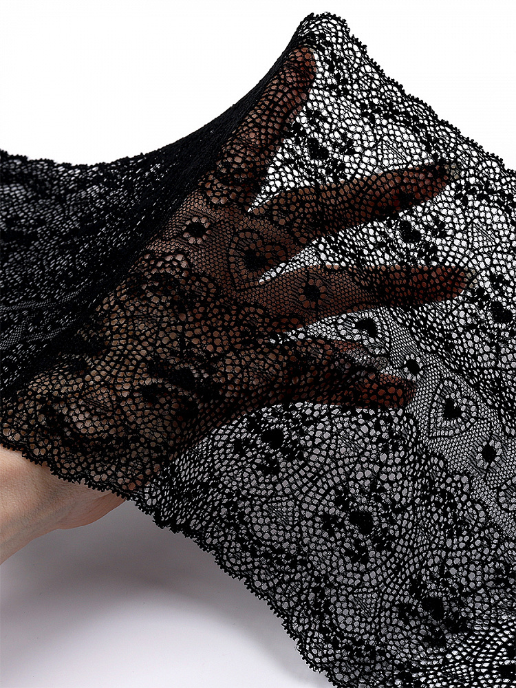 Очень красивый дизайн широкого эластичного кружева. Кружево тоненькое, очень нежное. Высокого качества. Очень актуальный дизайн в этом сезоне. Хорошо тянется. Идеально подходит для нижнего белья, одежды, домашнего текстиля и других изделий.