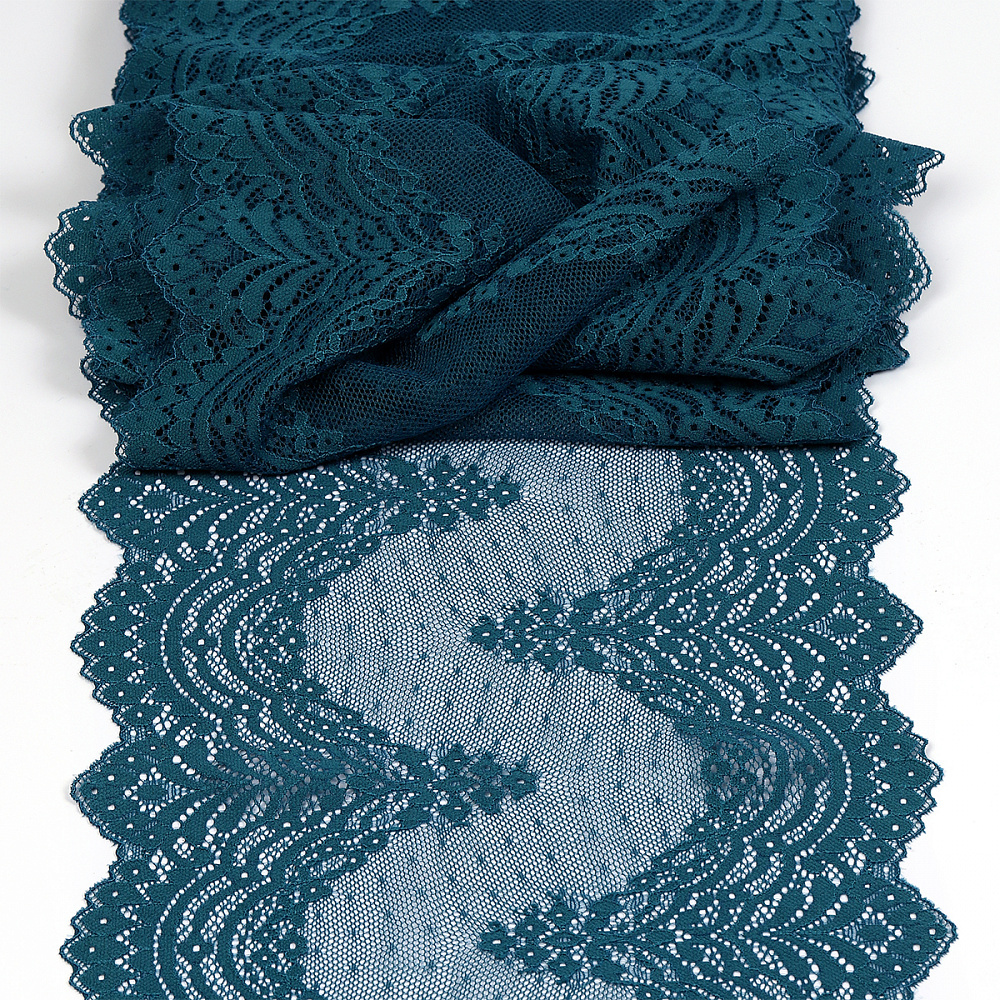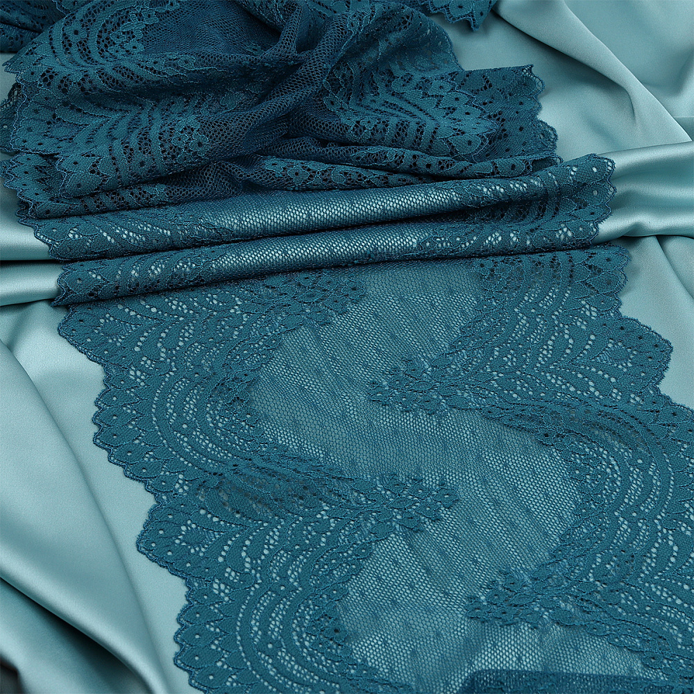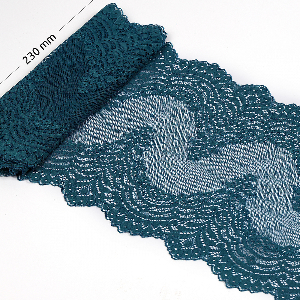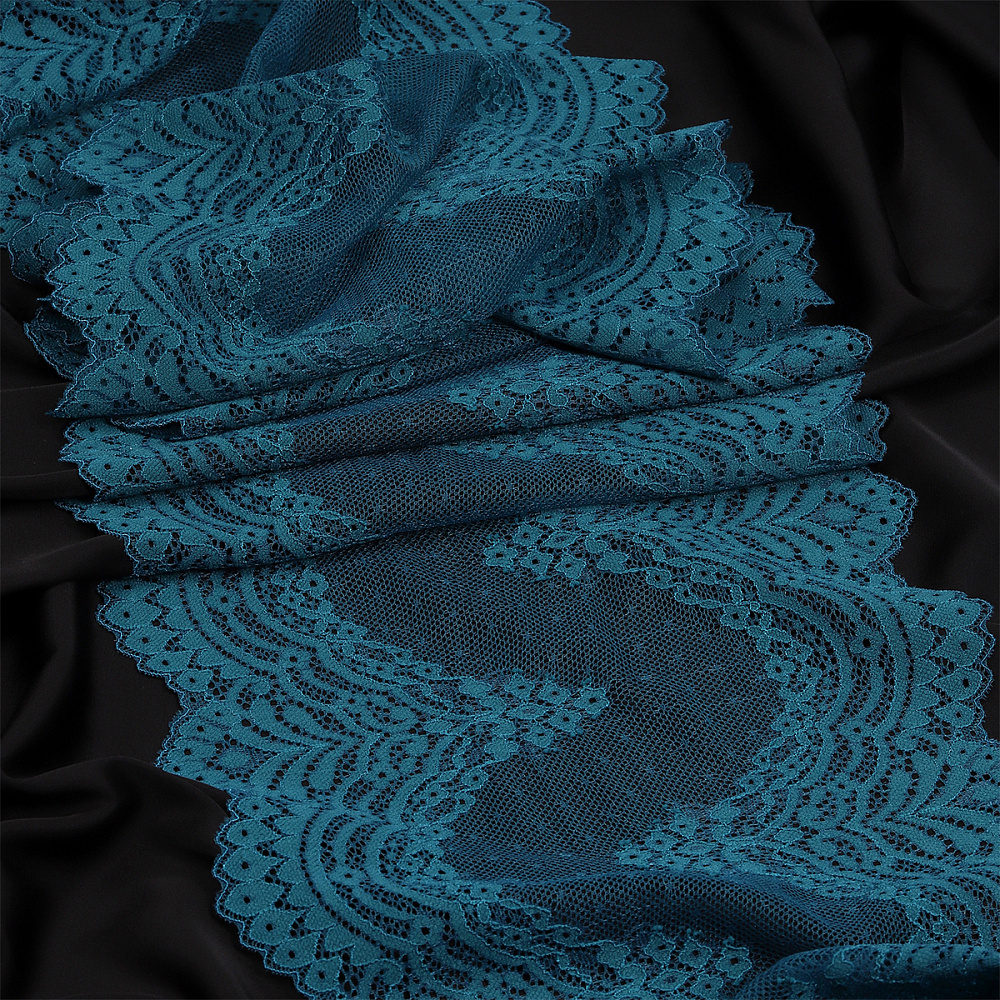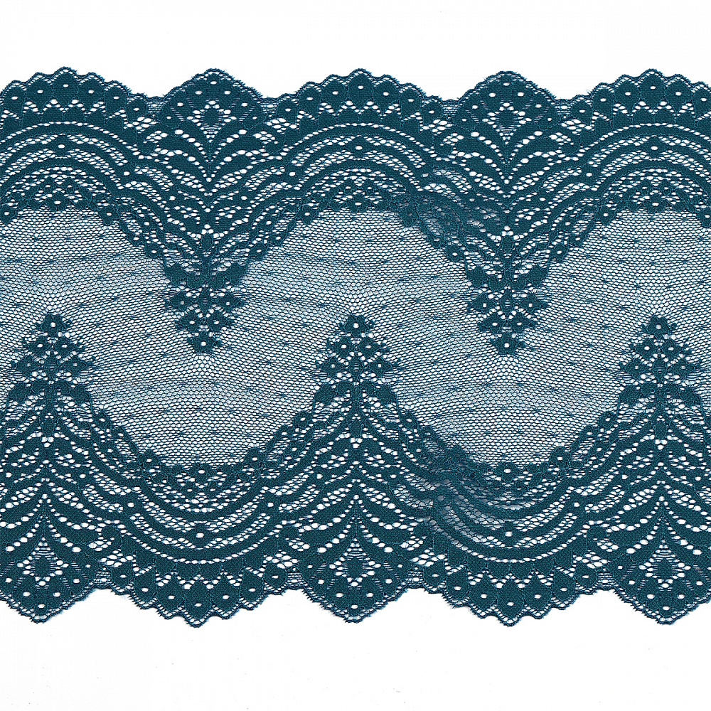 Кружево бельевое эластичное 230 мм / 10 м, 8036, цв.F222 изумрудно-синий, Kruzhevo
