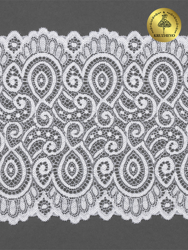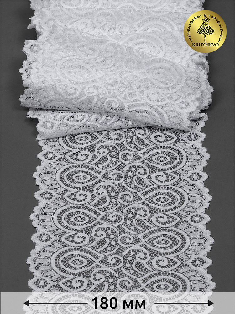 Кружево бельевое эластичное 180 мм / 3 м, L1351, цв.001 белый, Kruzhevo