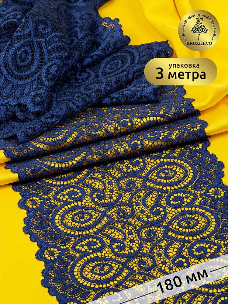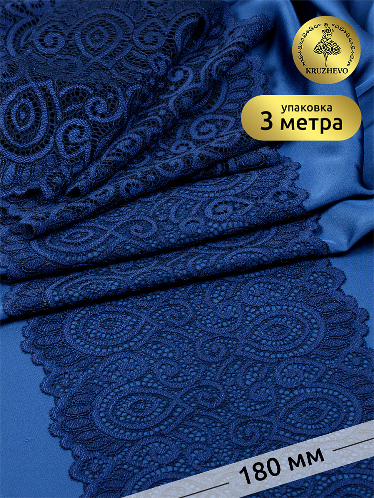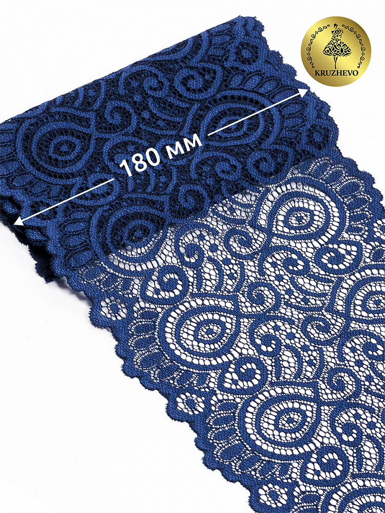 Кружево бельевое эластичное 180 мм / 3 м, L1351, цв.006 т.синий, Kruzhevo
