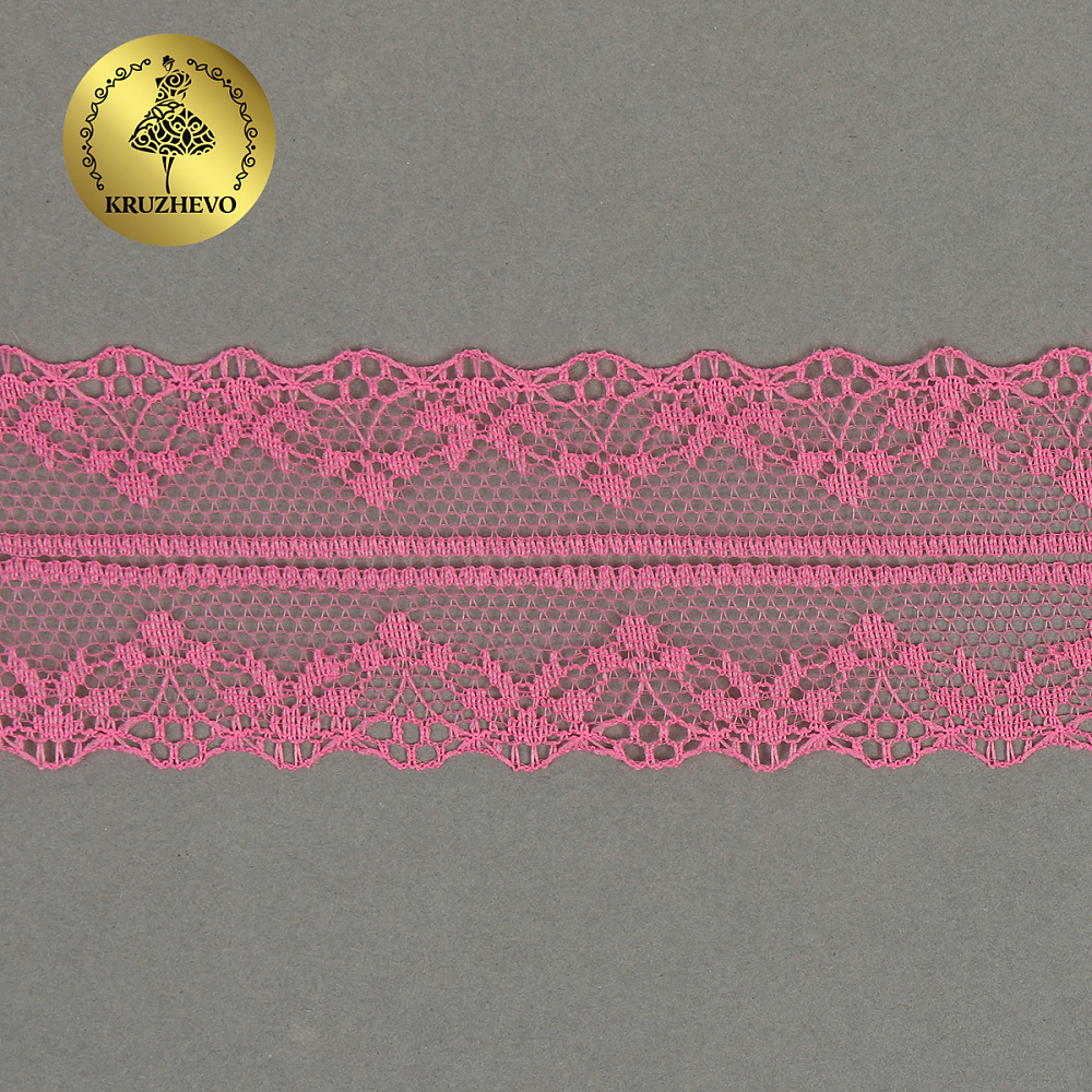 Кружево отделочное в стиле "трикотаж" 40 мм, 150-1 цв.218A ярк.розовый уп.27,4м