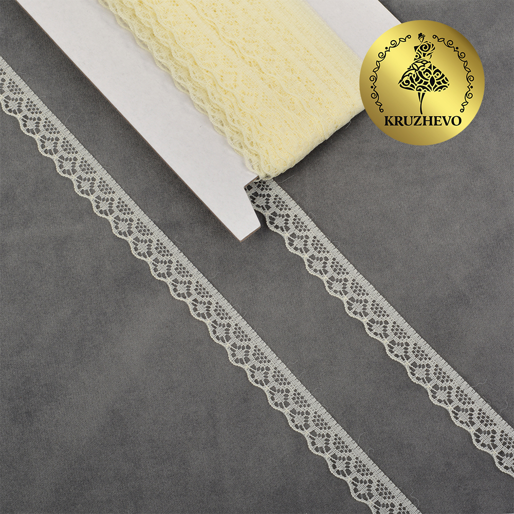 Кружево отделочное в стиле "трикотаж" 12 мм 150-2 цв.02 молочный, 27.4 м