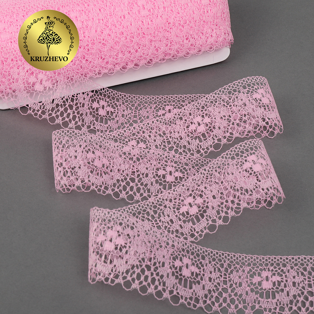 Кружево отделочное в стиле "трикотаж" 40 мм, 1660 цв.розовый, 27.4 м