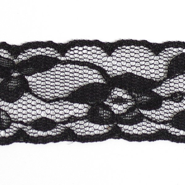 Кружево отделочное в стиле "трикотаж" 28 мм, диз. 6120 цв.черный уп.45,7м