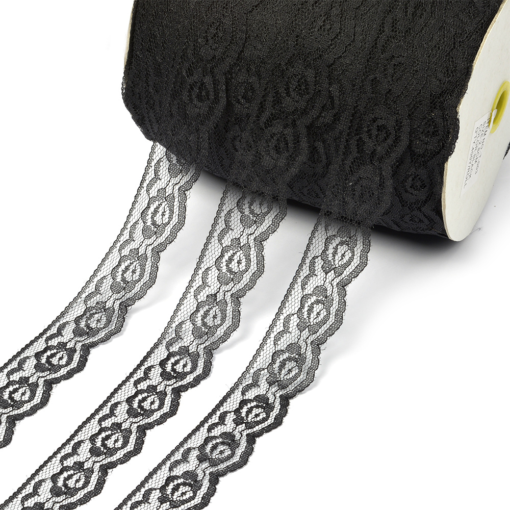 Кружево отделочное в стиле "трикотаж" 28 мм, диз. T-003 цв.черный уп.365,76м