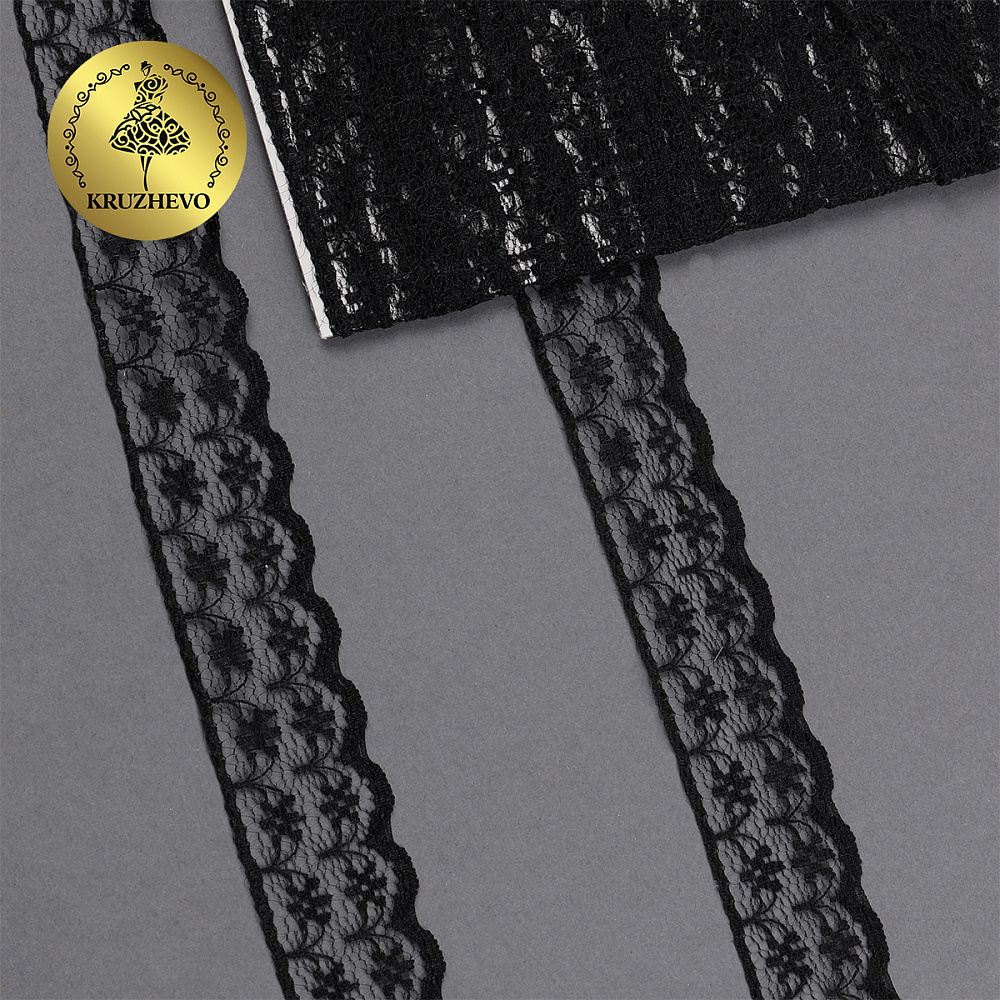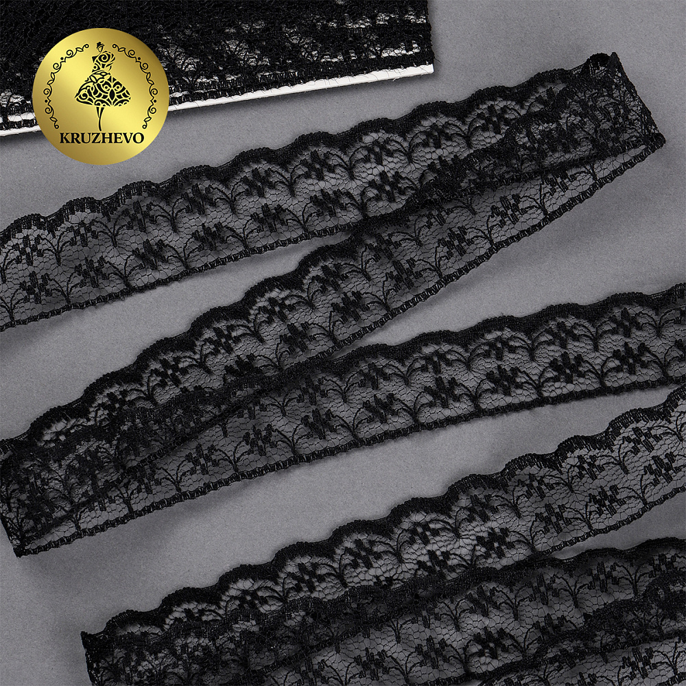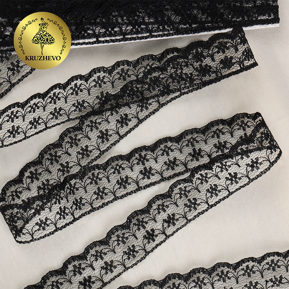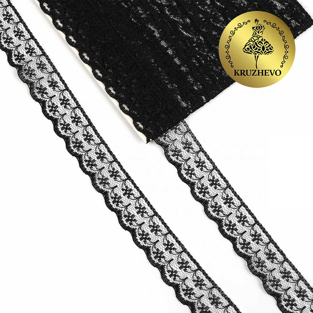 Кружево отделочное в стиле "трикотаж" 15 мм диз. T-012 цв.черный уп.9м