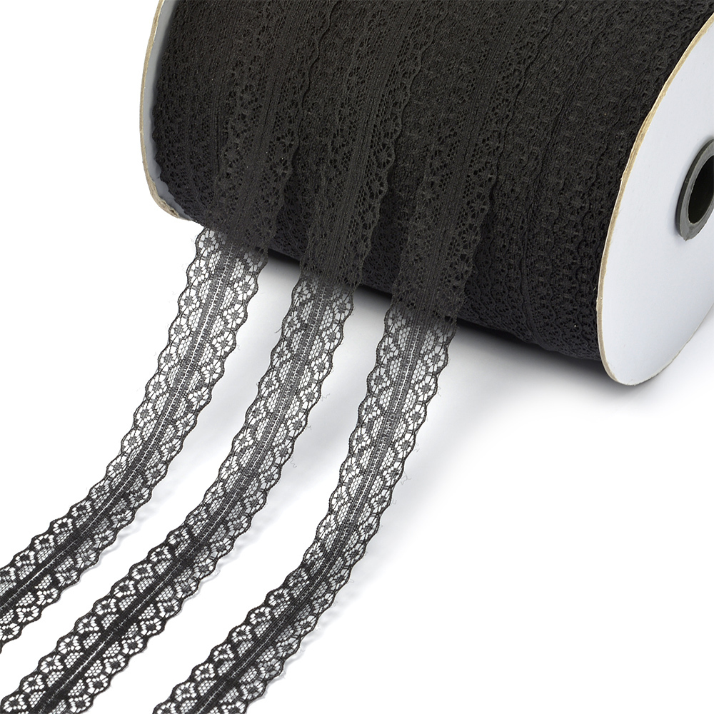Кружево отделочное в стиле "трикотаж" 30 мм, диз. T-016 цв.черный уп.365.6м