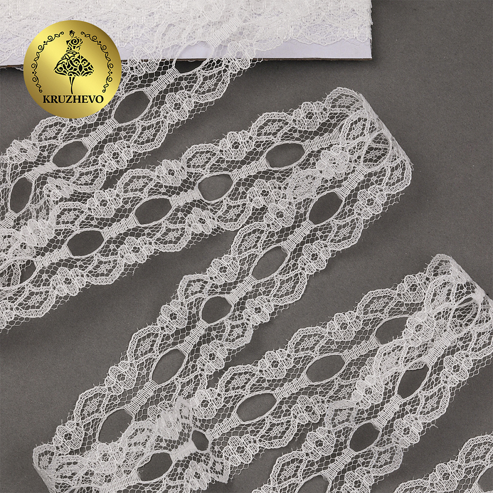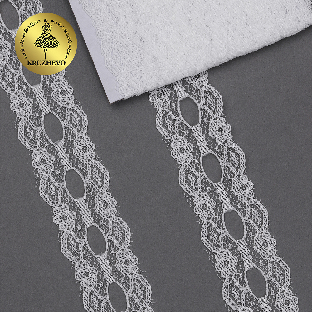 Кружево отделочное в стиле "трикотаж" 25 мм, диз. 926, цв.02 молочный, уп. 9.14 м