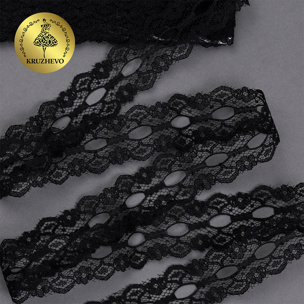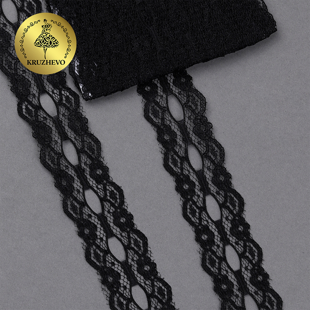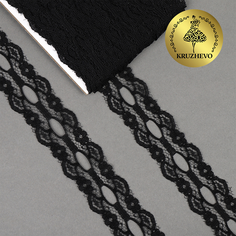 Кружево отделочное в стиле "трикотаж" 25 мм, диз. 926, цв.10 черный, уп. 9.14 м