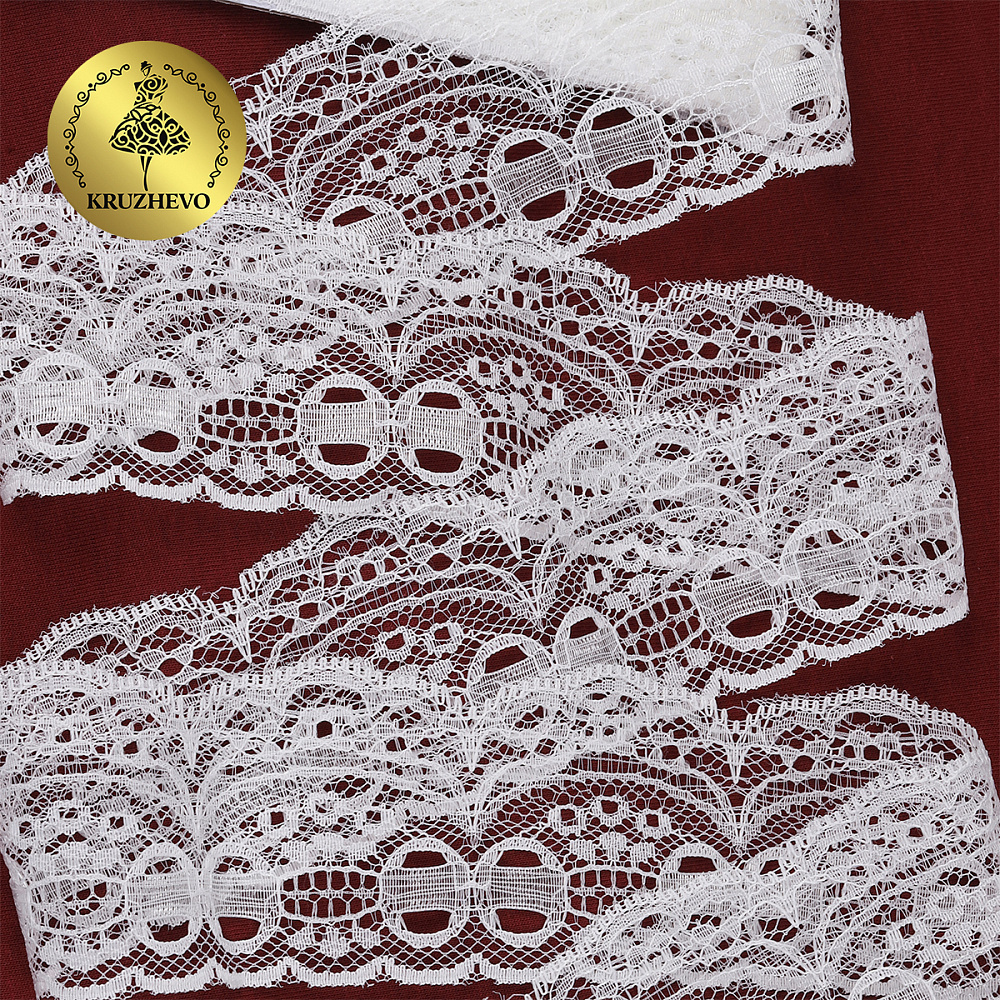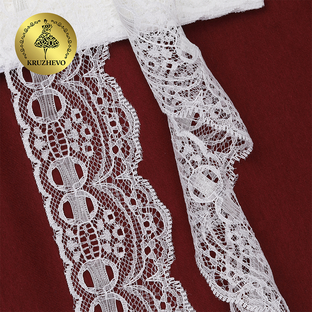 Кружево отделочное в стиле "трикотаж" 50 мм, диз. 928, цв.02 молочный, уп. 9.14 м