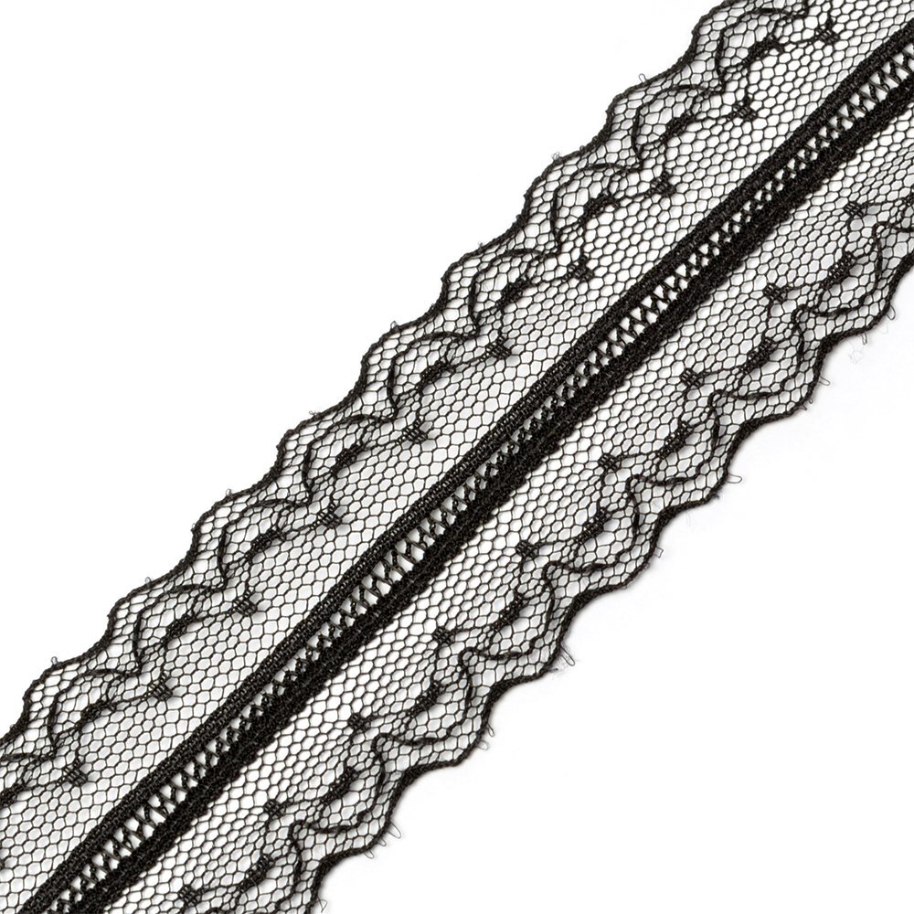Кружево отделочное в стиле "трикотаж" 35 мм, диз. 929, цв.черный, уп. 22,86 м